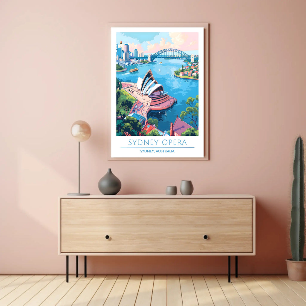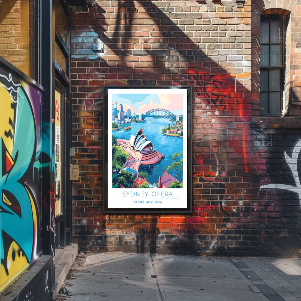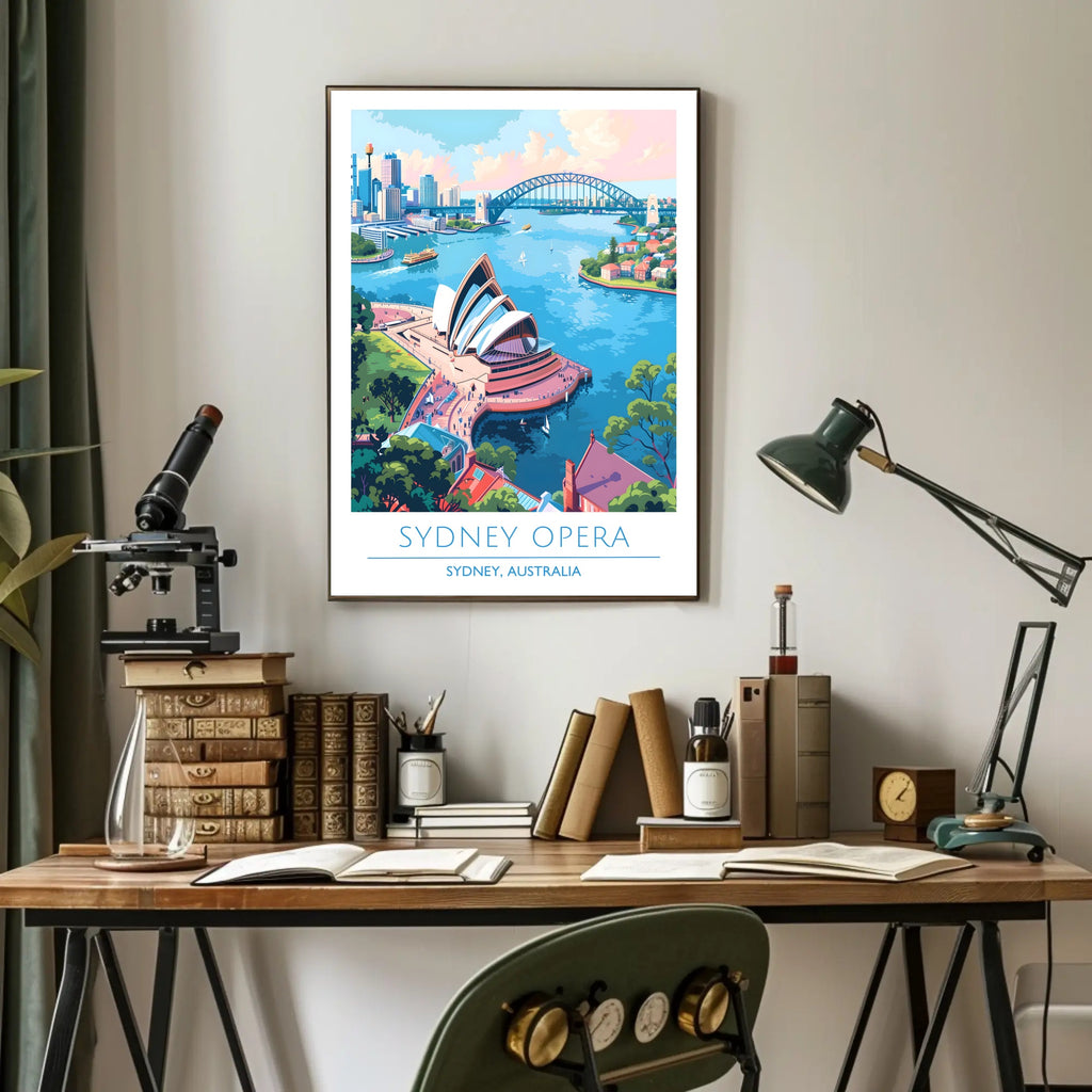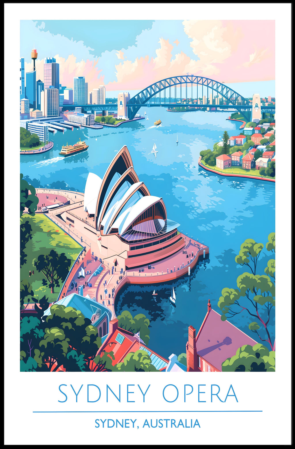 Sydney Opera House and Harbour Bridge Vintage Travel Poster