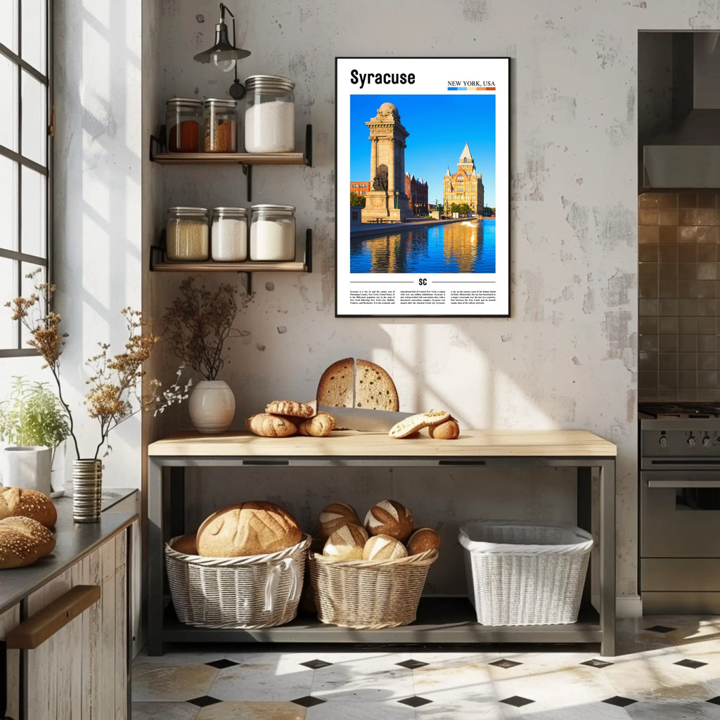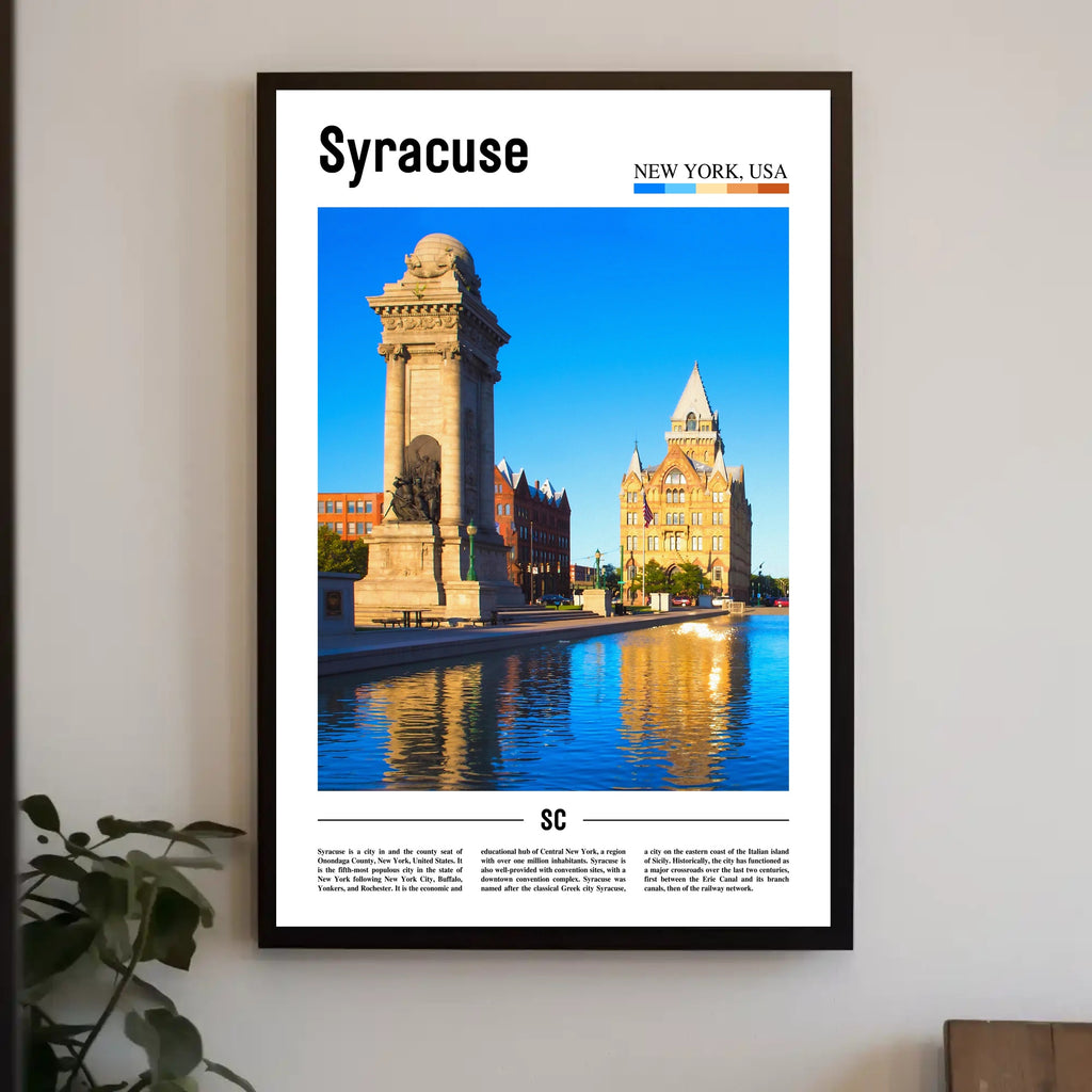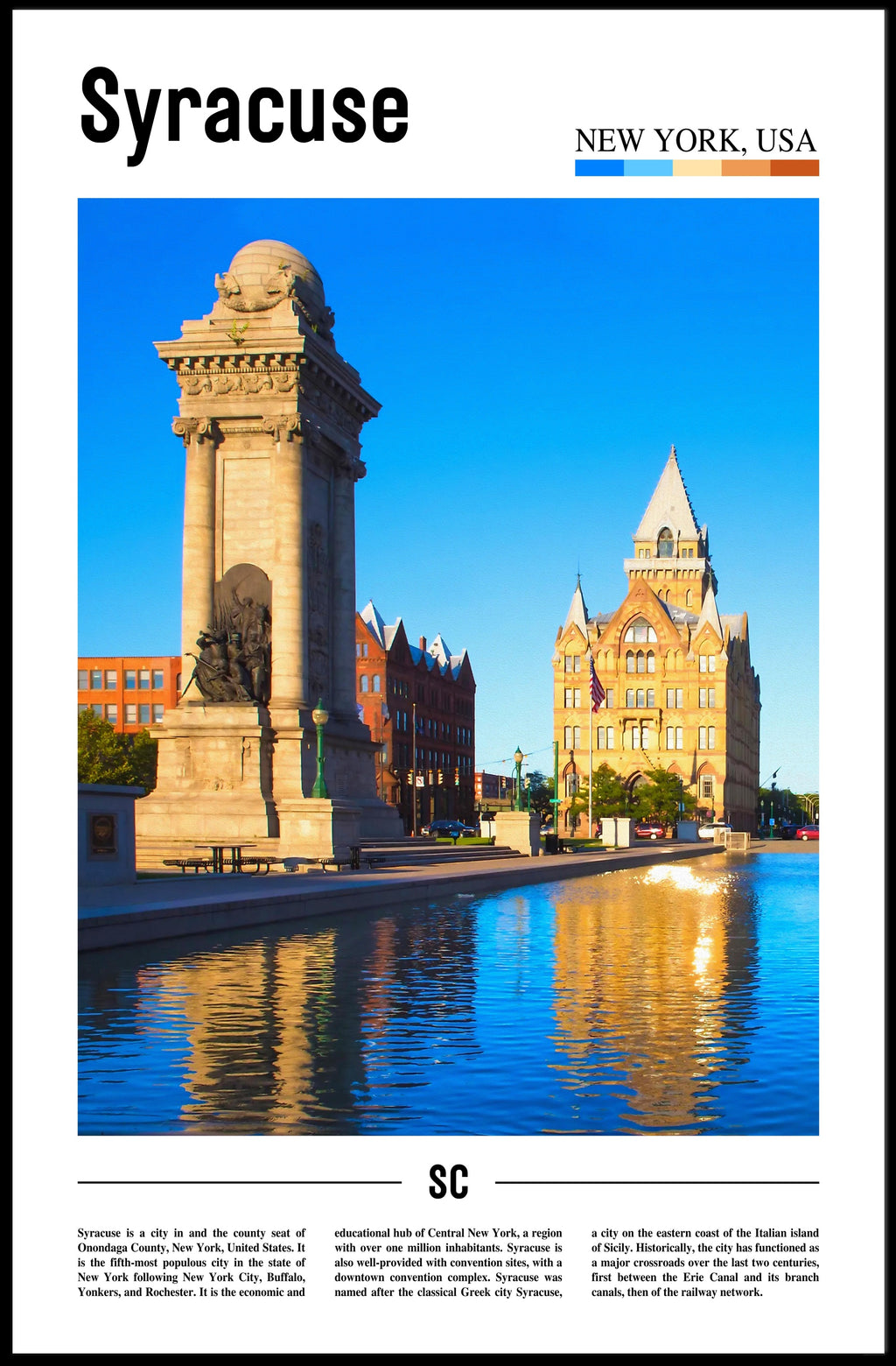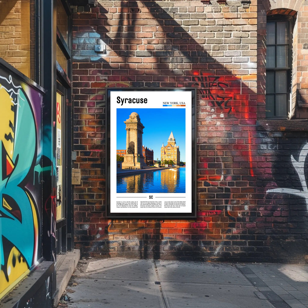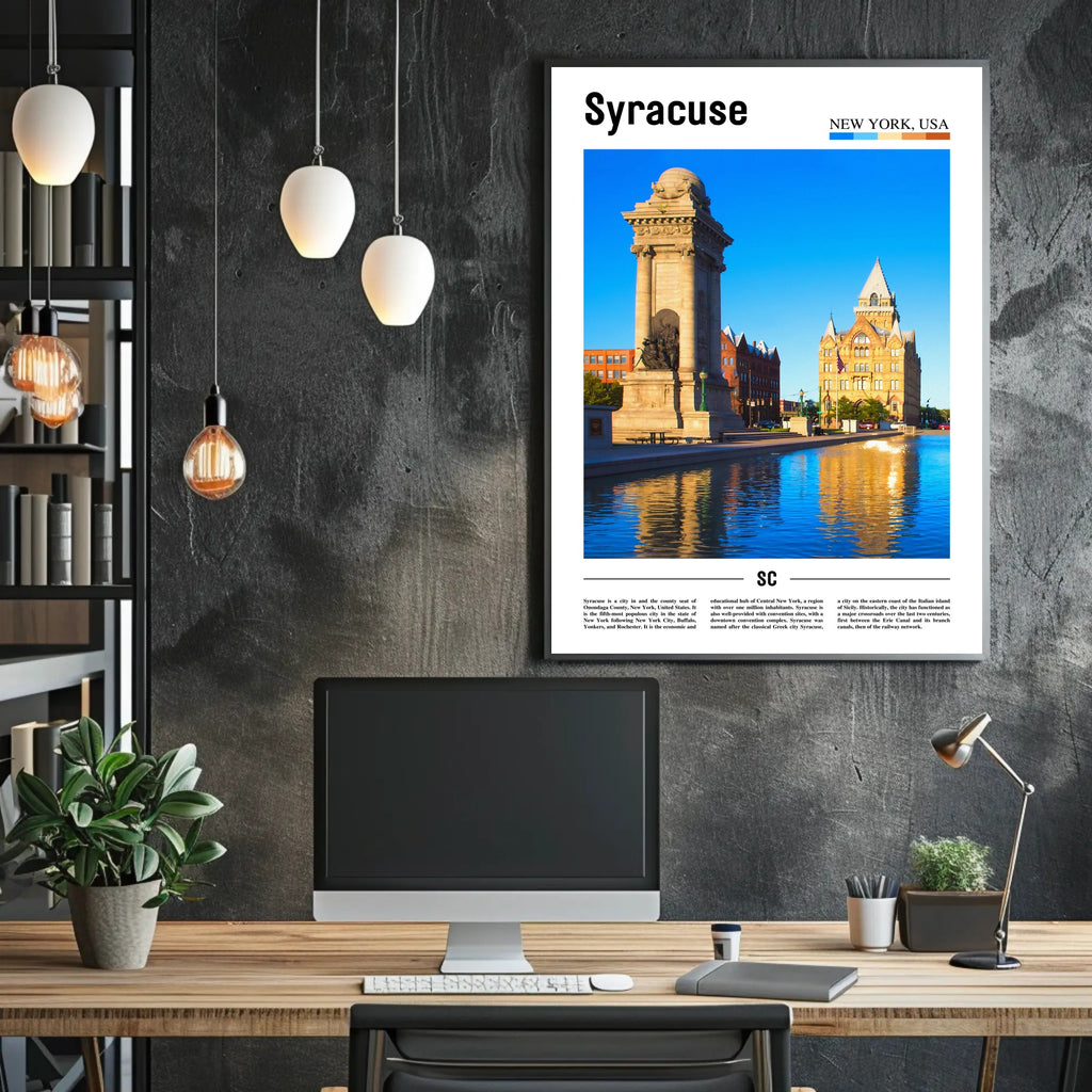 Immerse yourself in the beauty of Syracuse, New York, with our captivating Scenic Landscape Travel Poster. This exquisite piece of wall art perfectly captures the vibrant essence of urban architecture harmoniously blended with serene waterways. Ideal for travel enthusiasts and those who appreciate cultural heritage, this travel poster is designed to stir a sense of adventure and exploration, making it a stunning addition to any home decor. Whether you’re looking to enhance your living room, office, or a cozy nook, this artwork evokes a sense of sophistication and curiosity about upstate New York.