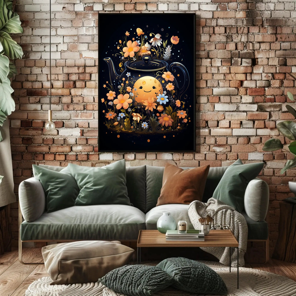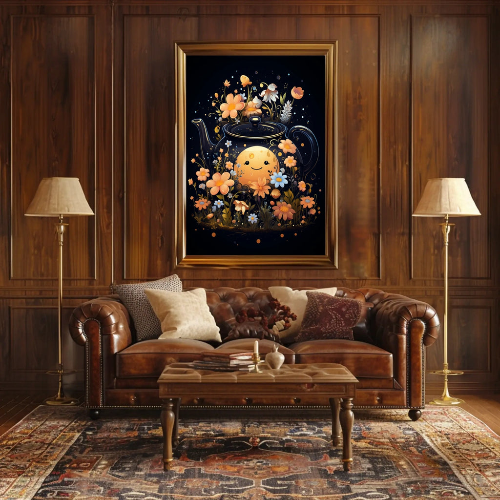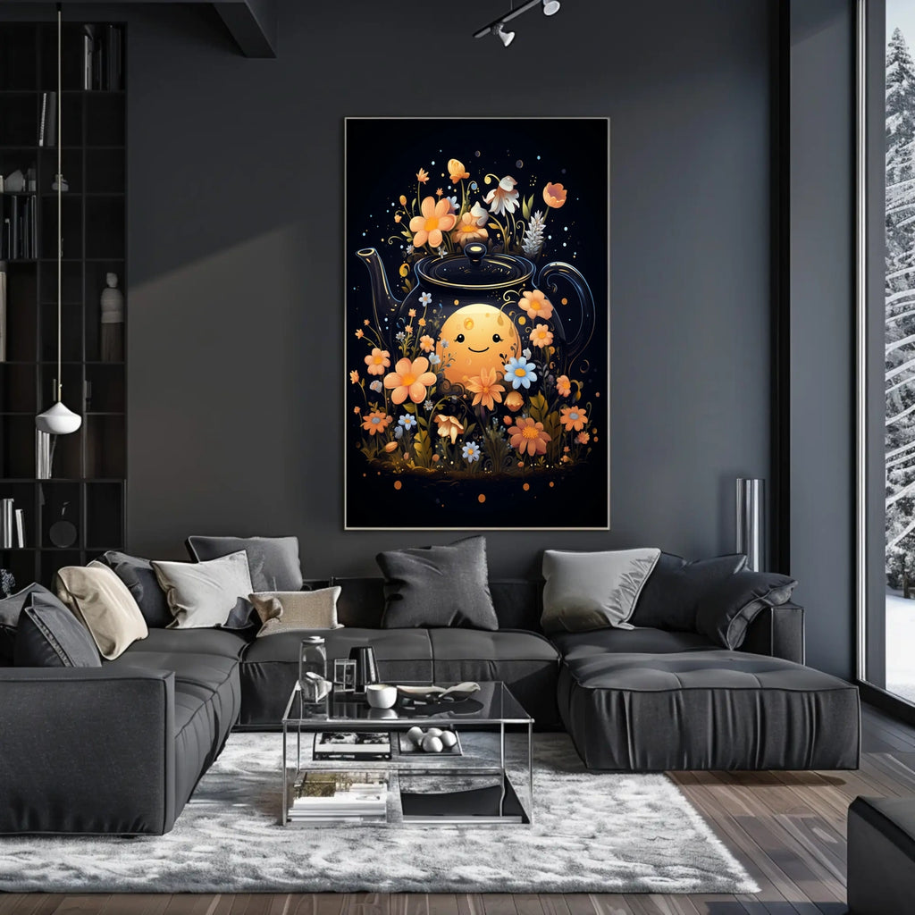 Immerse yourself in a whimsical world where a cheerful teapot blooms with vibrant flowers. This nature-inspired floral illustration captures warmth and magical artwork, turning ordinary spaces into cozy, uplifting retreats that spark joy and imagination.