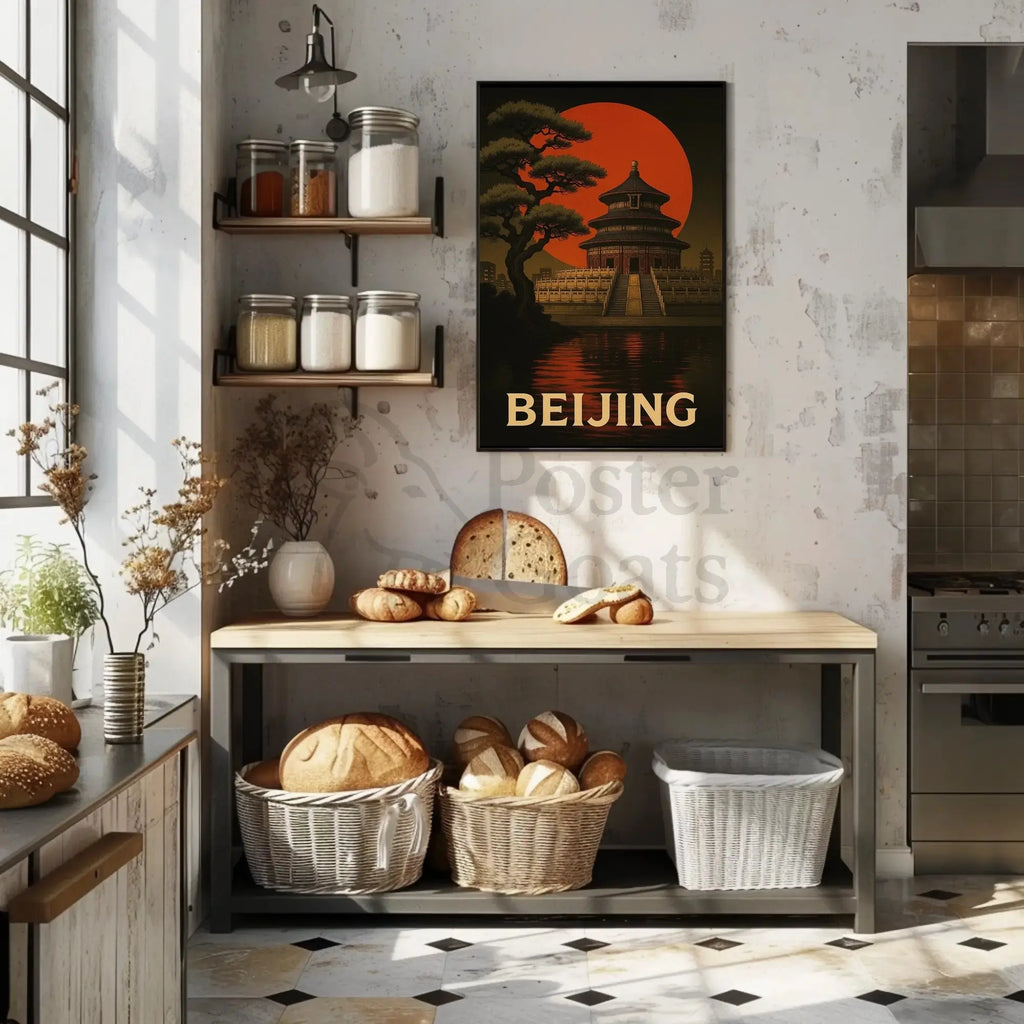 Add a piece of Beijing's heritage to your walls with this Temple of Heaven vintage travel poster by PosterGoat. Order now to elevate your space with evocative, historically inspired wall art.