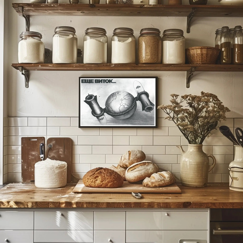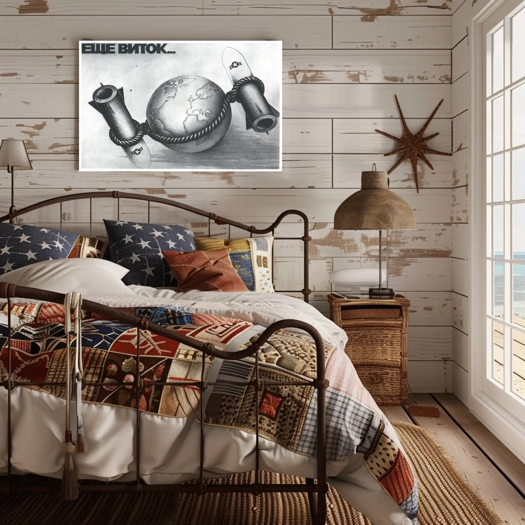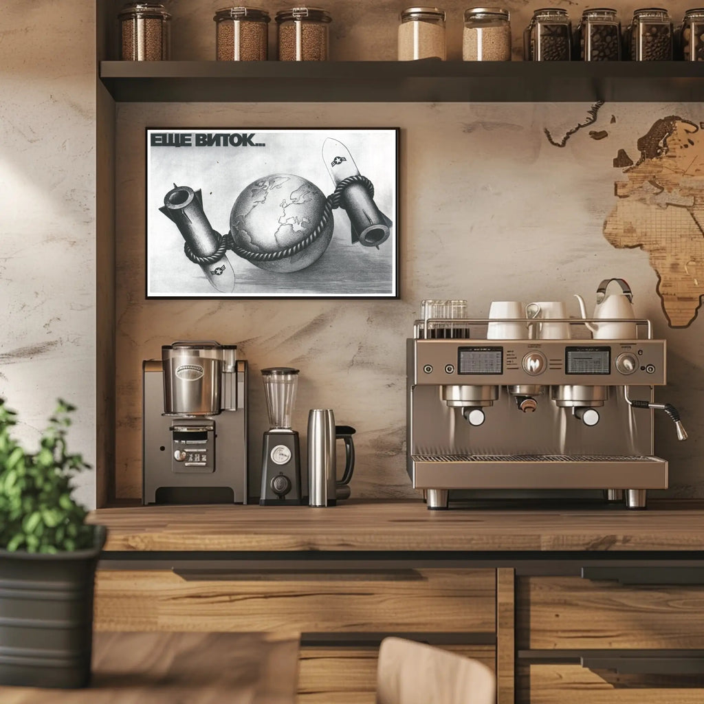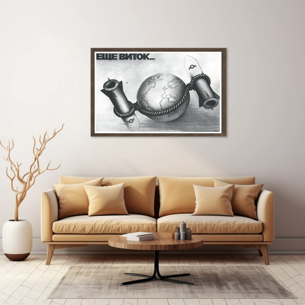 Evocative, vintage-inspired and boldly graphic, the Tension and Power Poster from PosterGoat brings dramatic black-and-white travel art energy to any wall. This striking paper print features a finely detailed globe bound by a thick rope and flanked by stylized rockets — a composition that captures motion, conflict and the pull of distant horizons in a single, memorable image.