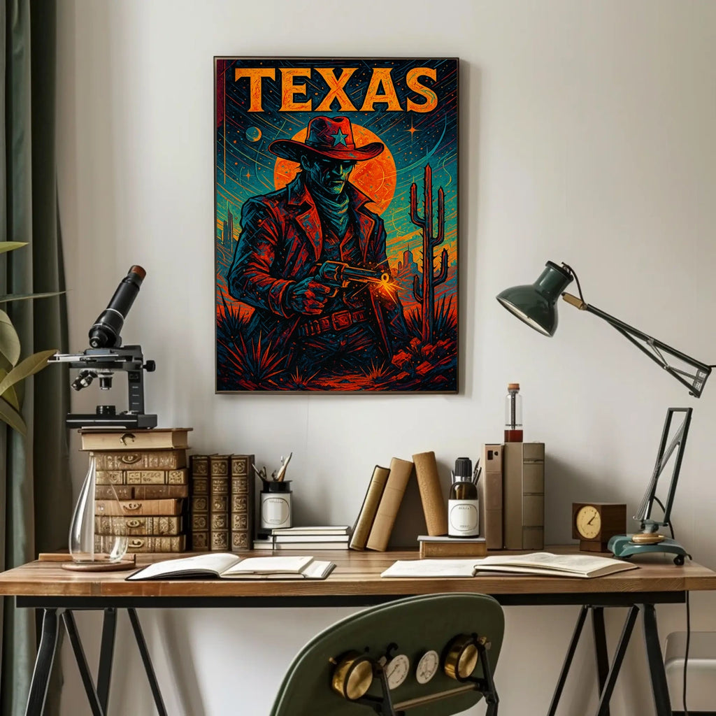 - Printed with precision and made to inspire, this artwork is more than decoration—it’s a conversation piece that connects history, culture, and style. Bring Texas Cowboy Poster into your home, classroom, or office today and let your walls tell a powerful story.