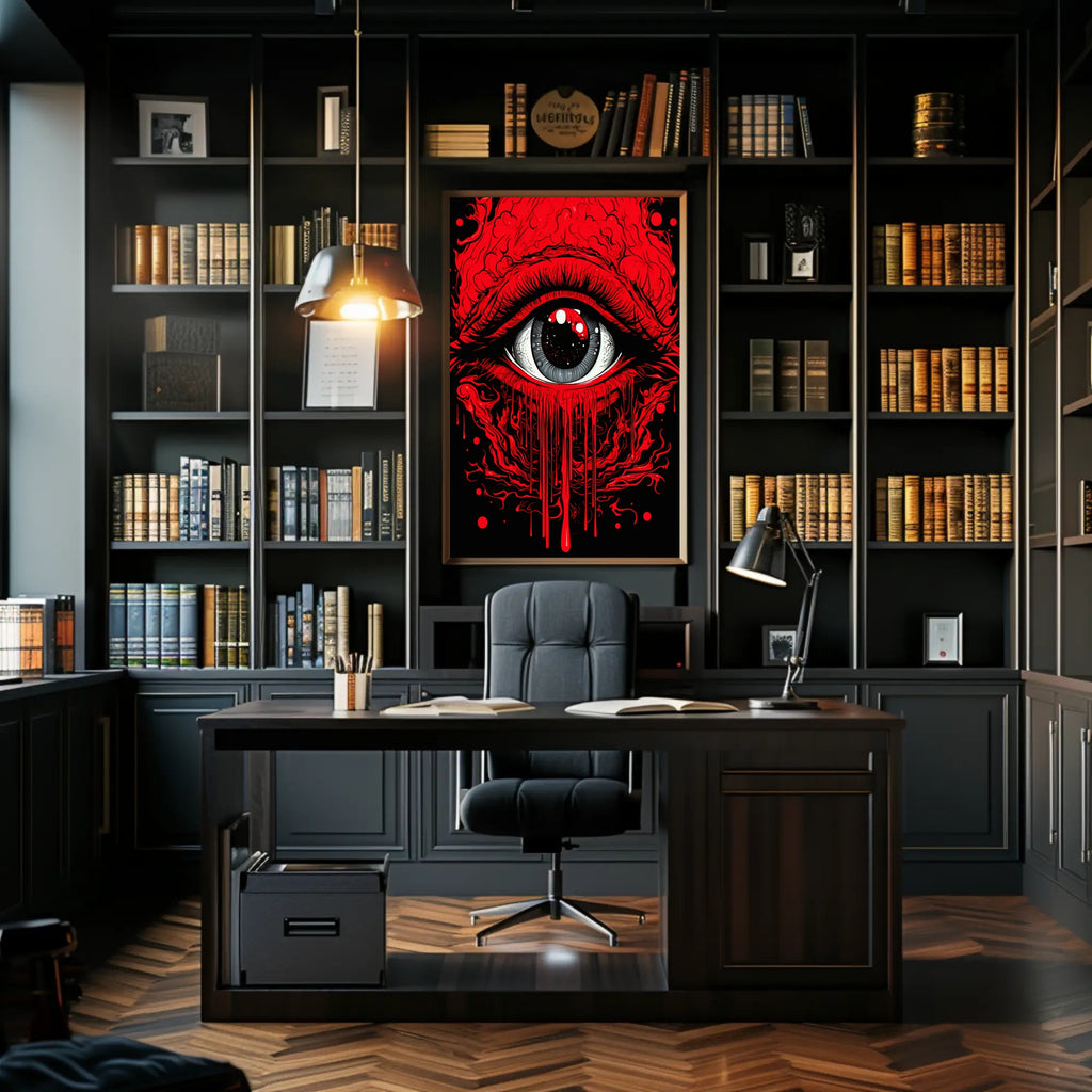 Command attention with The All-Seeing Eye Poster from PosterGoat — a bold, minimalist artwork that fuses surreal mystique with high-impact graphic design. Rendered in stark red and black with a luminous, cosmic iris at its center, this poster transforms any wall into a focal point that sparks conversation and curiosity.