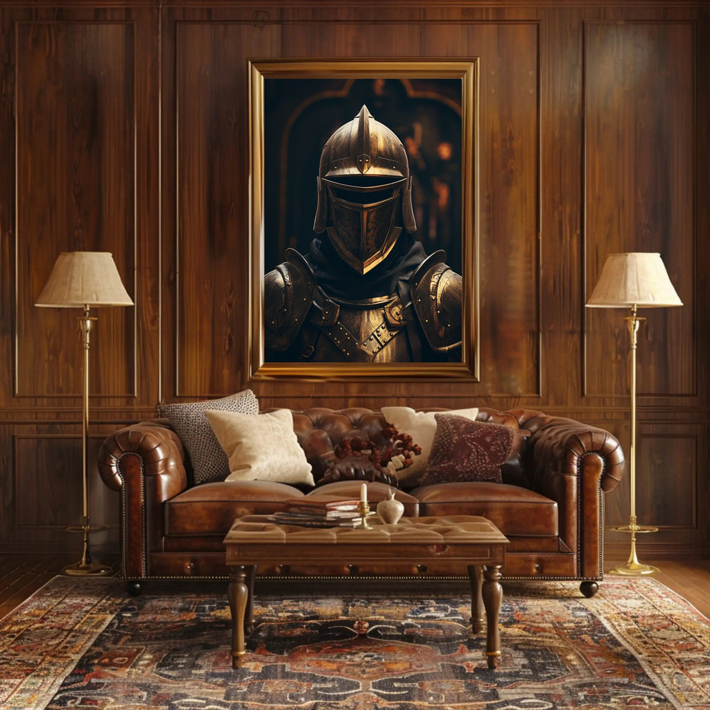 Whether you're layering gallery walls or placing a single statement piece above a console, The Armored Sentinel Poster commands attention and complements a range of interior styles. Add this commanding poster to your collection and transform ordinary walls into a scene of strength and intrigue.