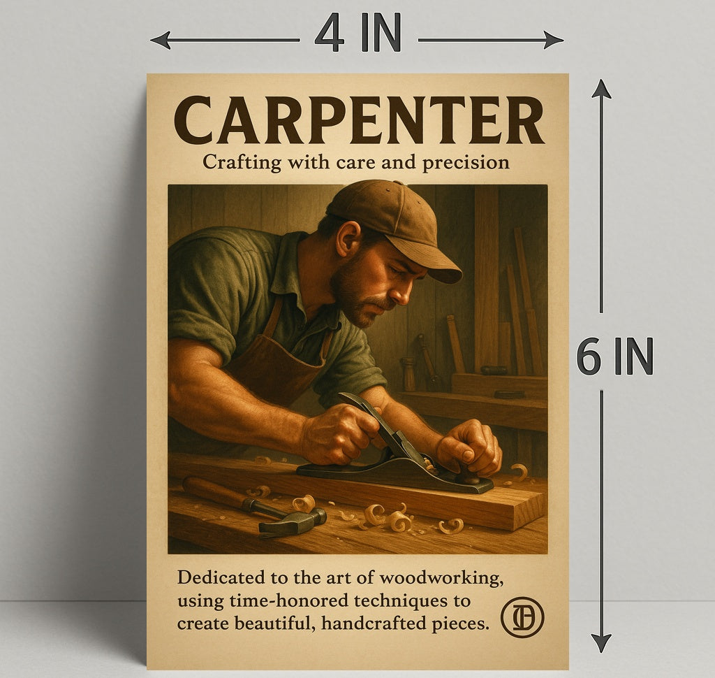 - Authentic, nostalgic imagery: Detailed illustration of a craftsman at work, complete with a traditional workbench, hammer, and the tactile texture of freshly planed wood.