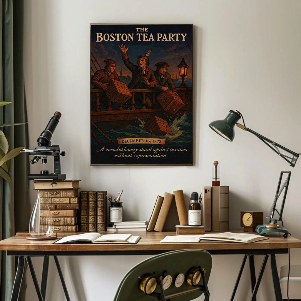 Add the Boston Tea Party Vintage Poster Wall Art to your space today—frame it, hang it above a mantel or console, and let PosterGoat help you celebrate a defining moment in history. Order now to elevate your decor with timeless storytelling art.