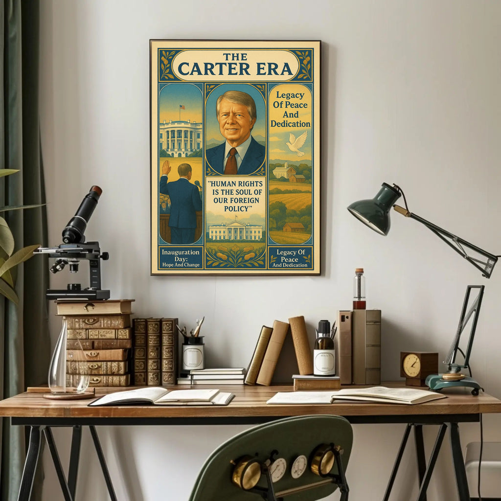 Elevate your home decor with The Carter Era Poster today! With its unique design and meaningful representation, it's time to bring this captivating piece into your space. Don't miss the chance to own a piece of history—order now!