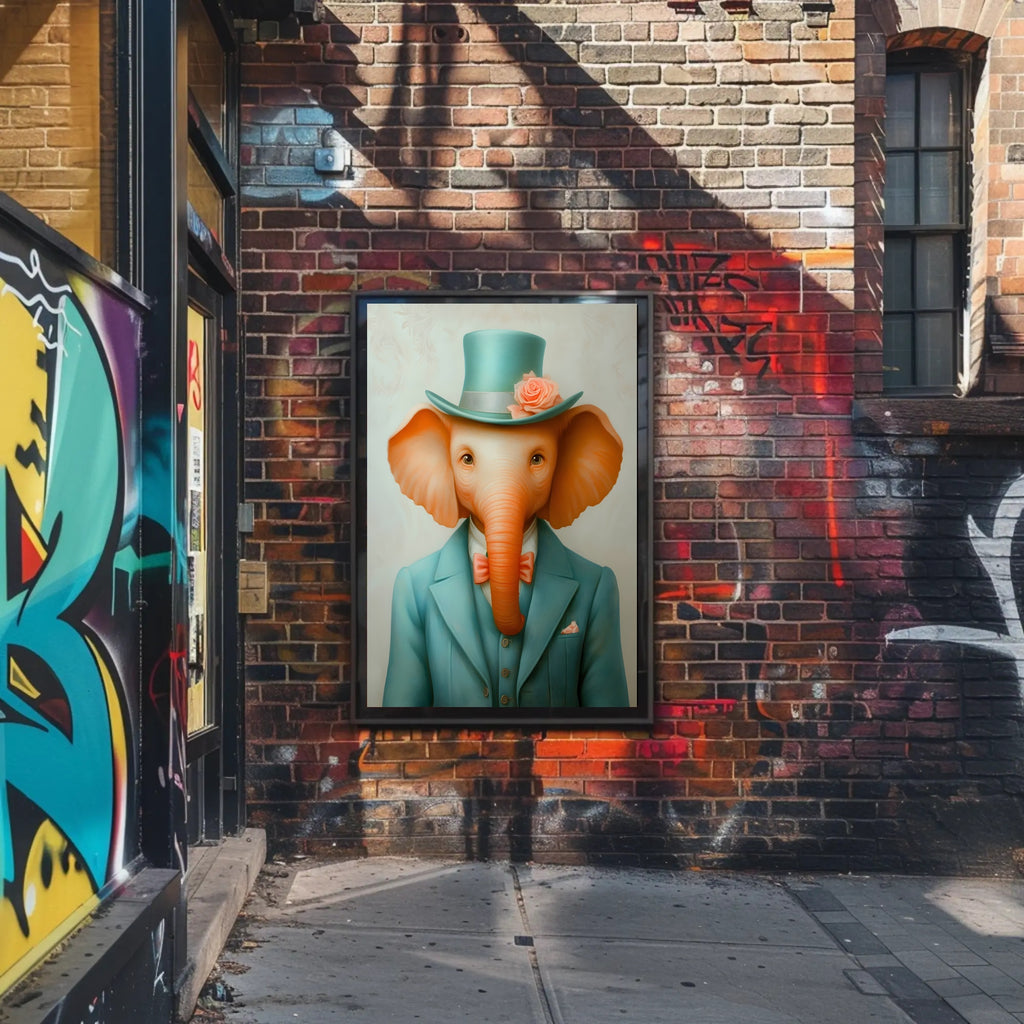 Bring a touch of dapper elegance into your home—order The Dapper Elephant Poster from PosterGoat today and make your walls tell a story.