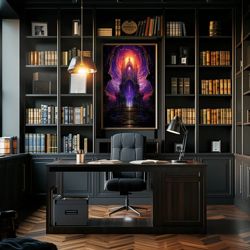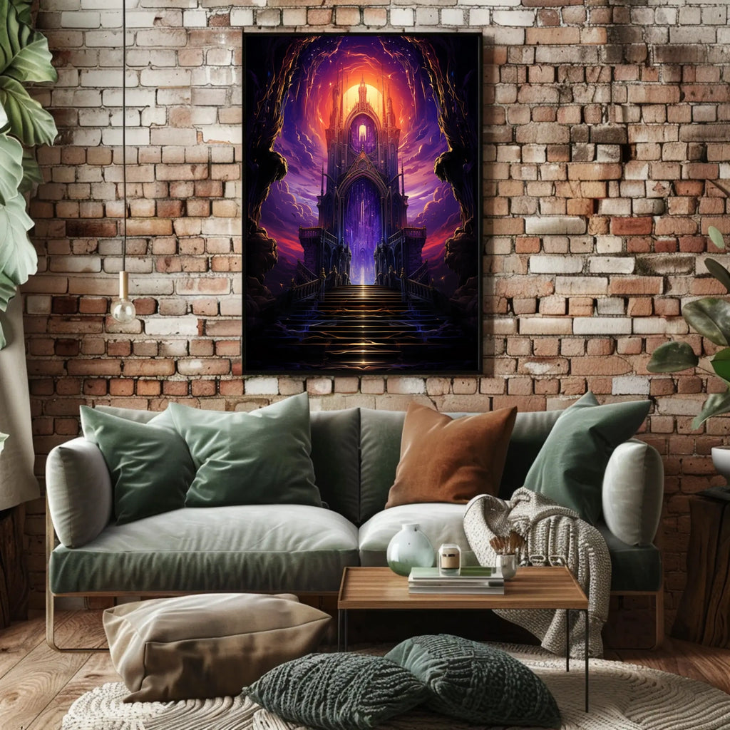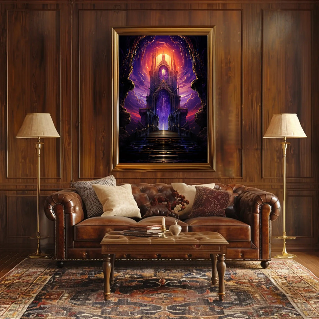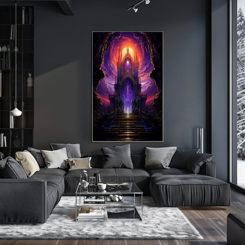 Bring home this enchanted piece to spark conversation and daily inspiration. Elevate your living area with The Enchanted Citadel and let the magical sunset wash your walls with color—buy now to own a gateway to a mythical realm.