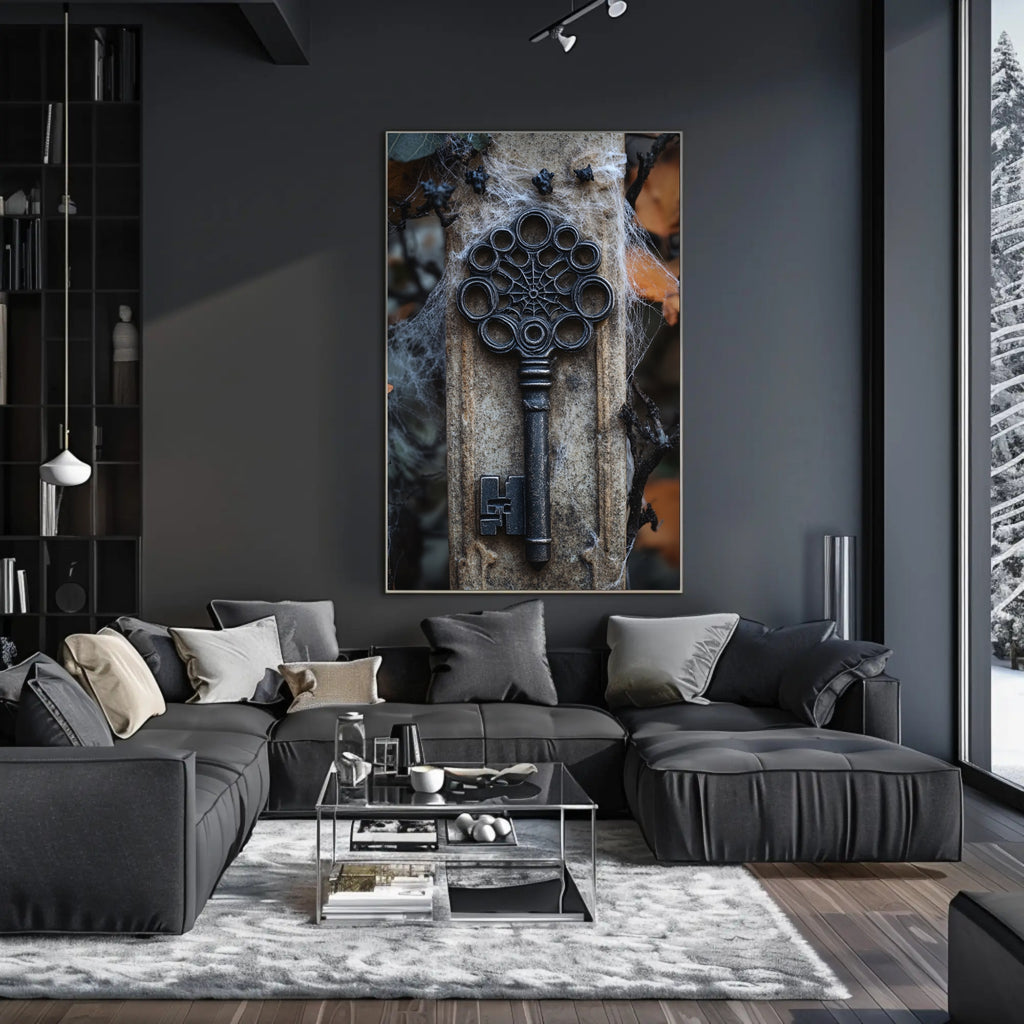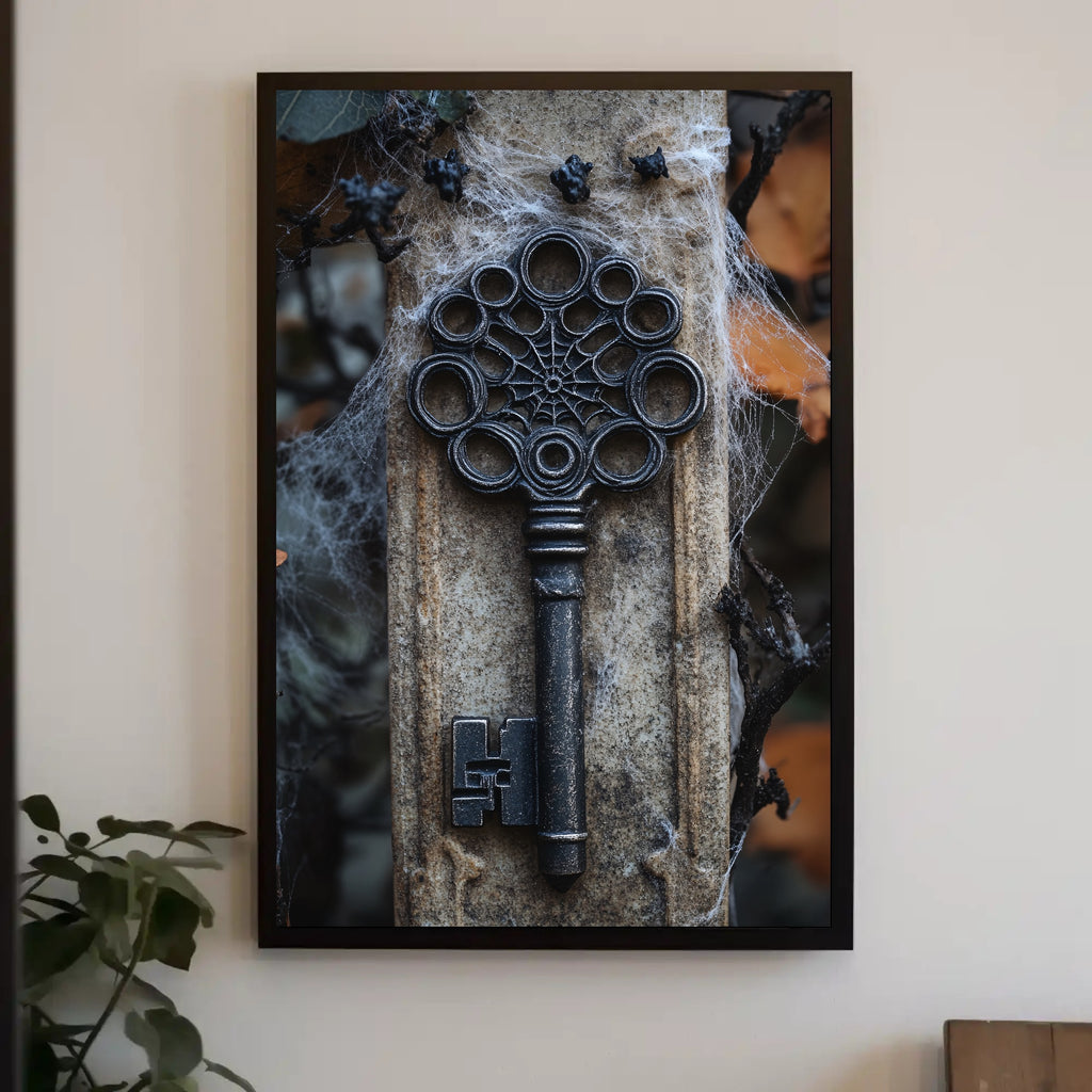 Bring a whisper of mystery to your walls with The Enchanted Key Poster from PosterGoat — an artful, minimalist poster that transforms any room into a scene of quiet intrigue. A weathered iron key rests against textured stone, framed by delicate spiderwebs and amber autumn leaves, creating a striking focal point that blends enchanted charm with seasonal atmosphere.