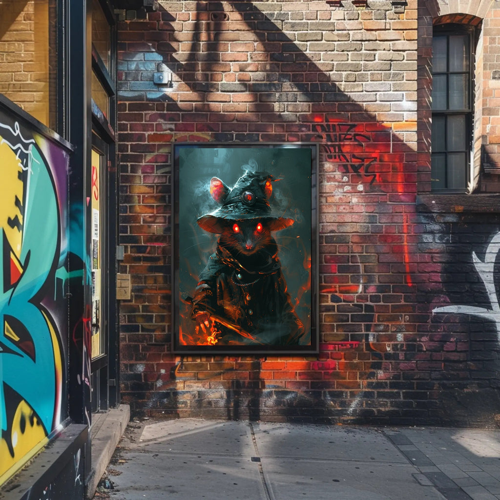 Spellbinding focal point: A mysterious mouse sorcerer with glowing red eyes and a weathered, rune-adorned hat makes for an unforgettable centerpiece in living rooms, game rooms, or themed galleries.