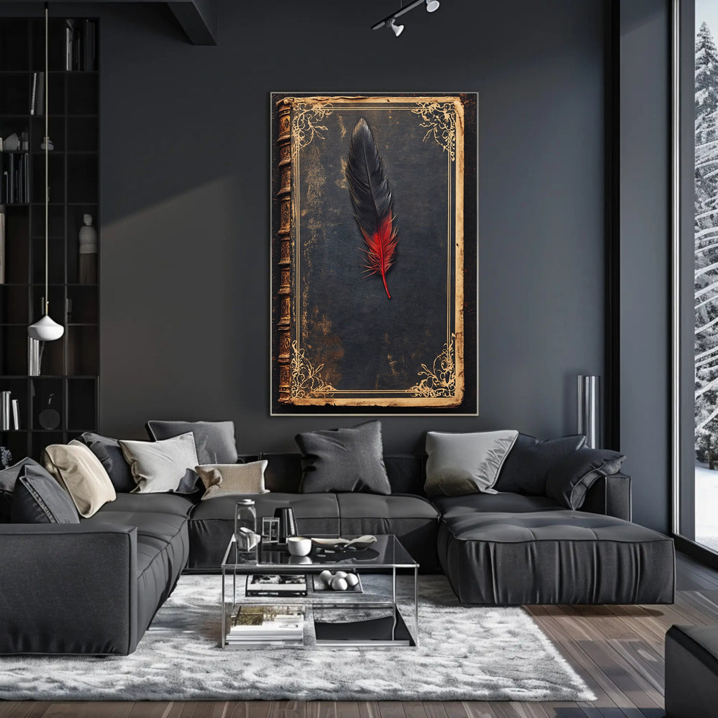 - Striking focal point: The deep, tactile background and vivid red feather create immediate visual impact, ideal for living rooms, home libraries, or entryways.