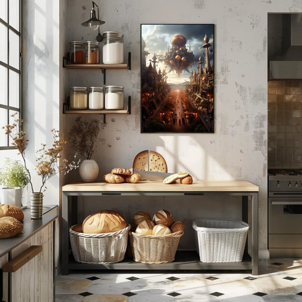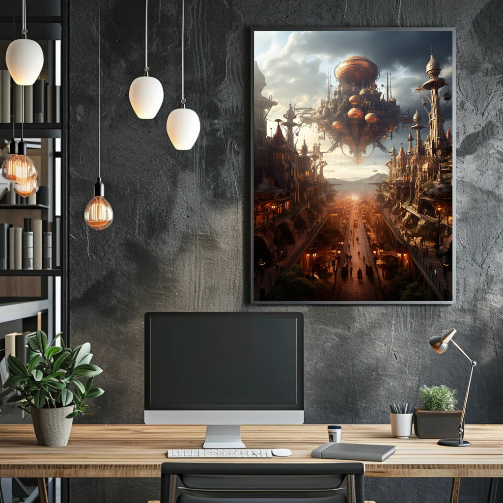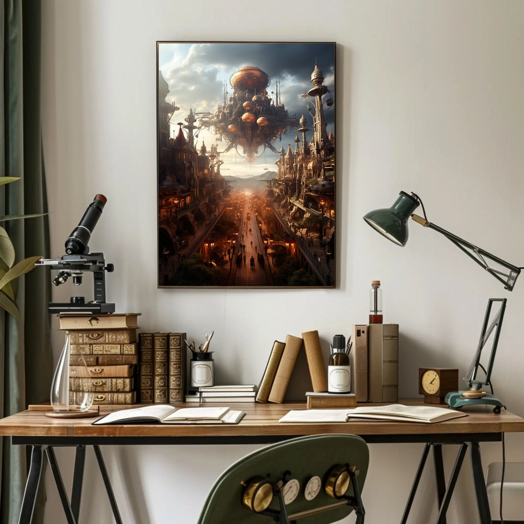 Enhance your decor with The Floating Cityscape Poster and let its enchanting visuals spark conversations and inspire wanderlust. Don't miss out on adding this exquisite piece to your collection—order yours today!
