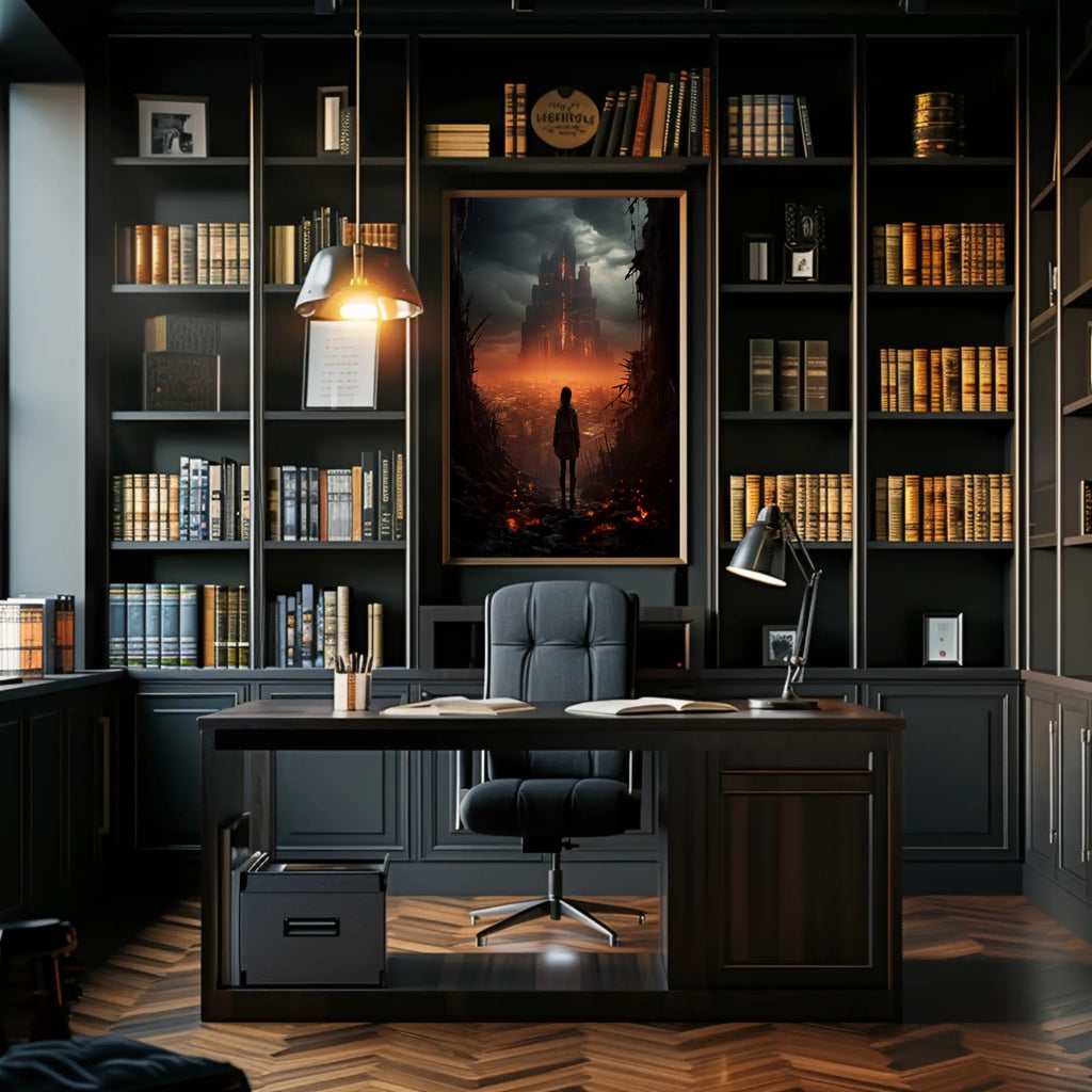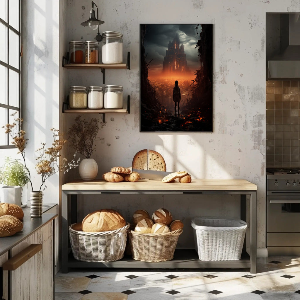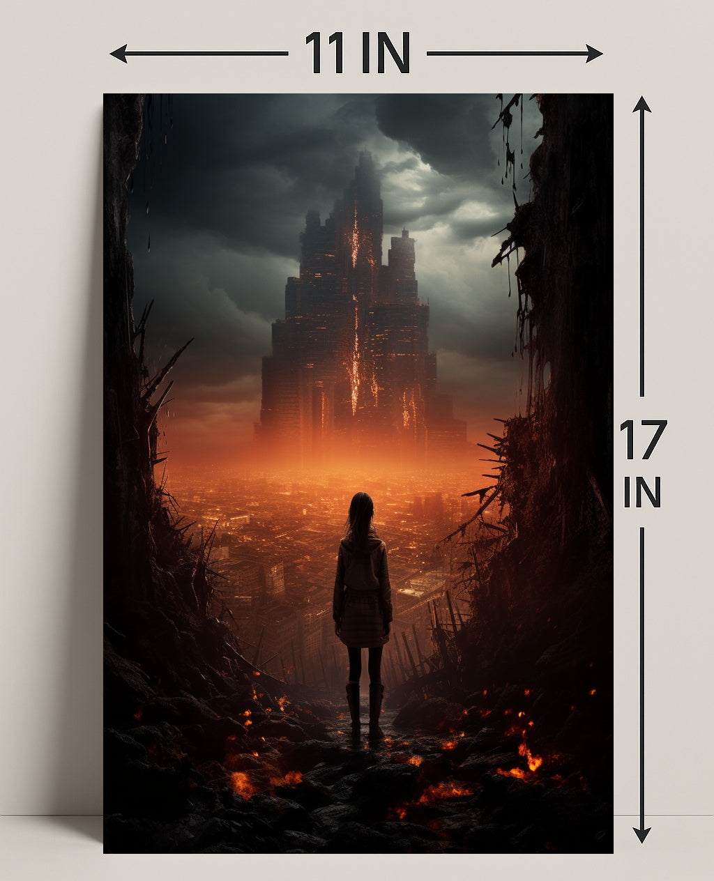 The Last Stand Poster from PosterGoat is a cinematic wall art print that captures a lone figure facing a towering, ember-lit city beneath stormed skies — a breathtaking blend of minimalism and dramatic scenic storytelling. Perfect for home, studio, or office decor, this poster brings an adventurous, moody focal point to any room and appeals to fans of atmospheric artwork and collectible prints.