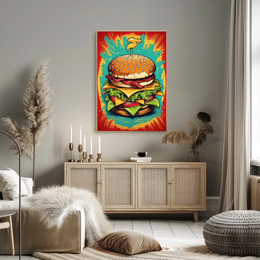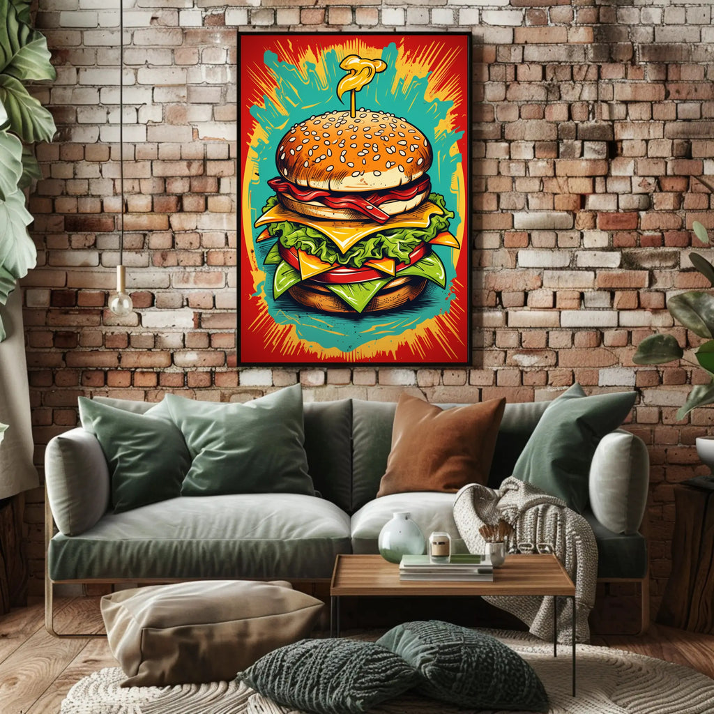 Style & Theme: Pop Art, Art & Aesthetic — poster subtheme: burger, explosion, wall art