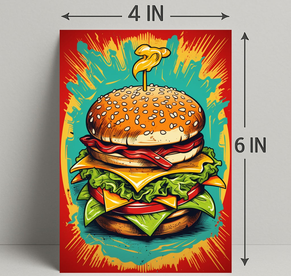 Showcase Piece: Large, detailed composition puts the burger front-and-center, creating a playful focal point that sparks conversation and appetite alike.