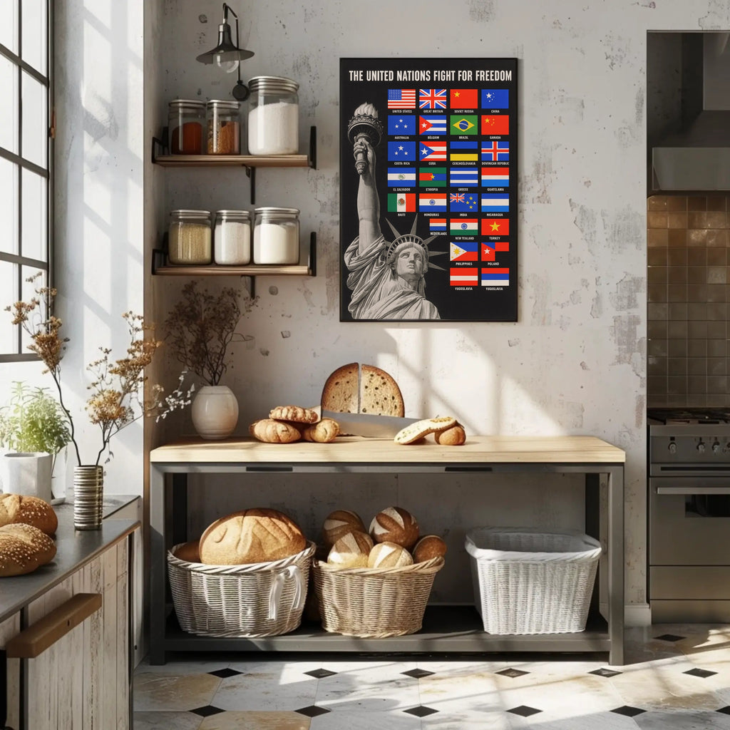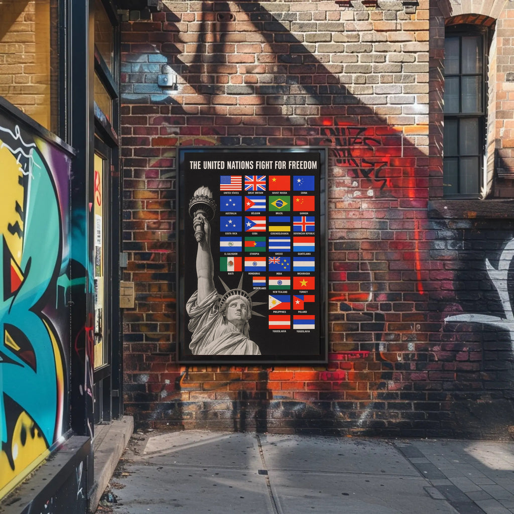Bring history and design into your space. Add "The United Nations Fight for Freedom" poster by PosterGoat to your décor collection today — framed or unframed, it’s an impactful poster that honors freedom and elevates any room. Order now to make a powerful visual statement.