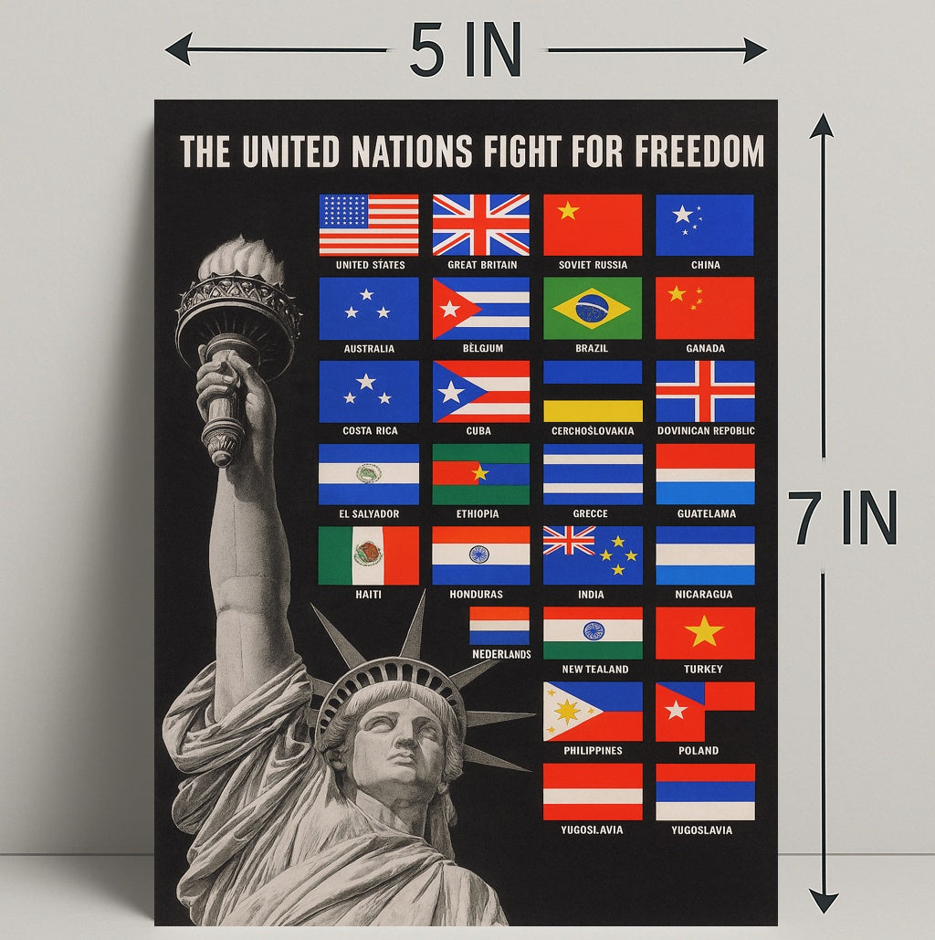 - Conversation starter — a meaningful vintage-style tribute to global unity and wartime solidarity, rendered with contemporary minimalist sensibility.