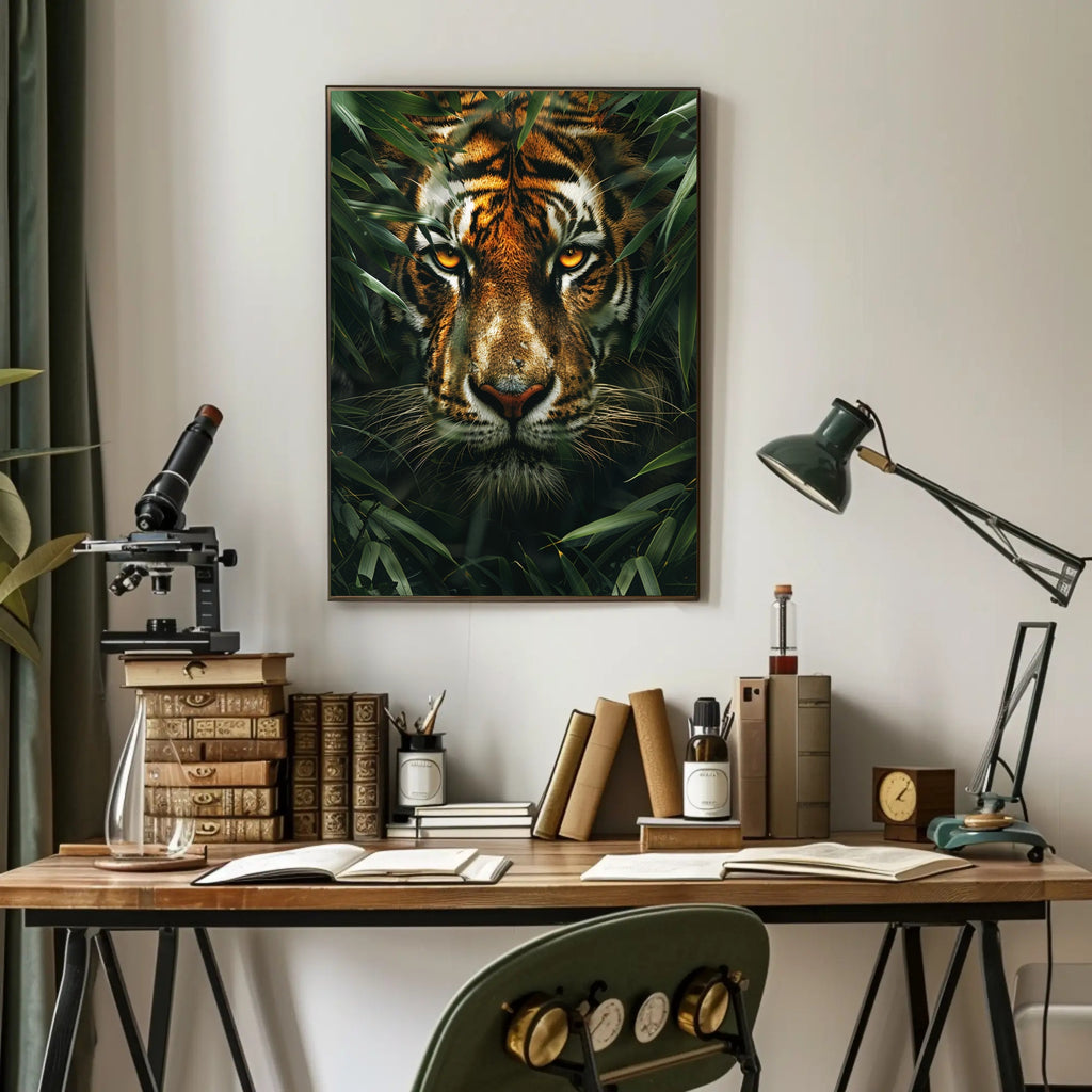 - Captivating focal point: A dramatic, watchful tiger portrait designed to draw attention in living rooms, offices, or entryways.