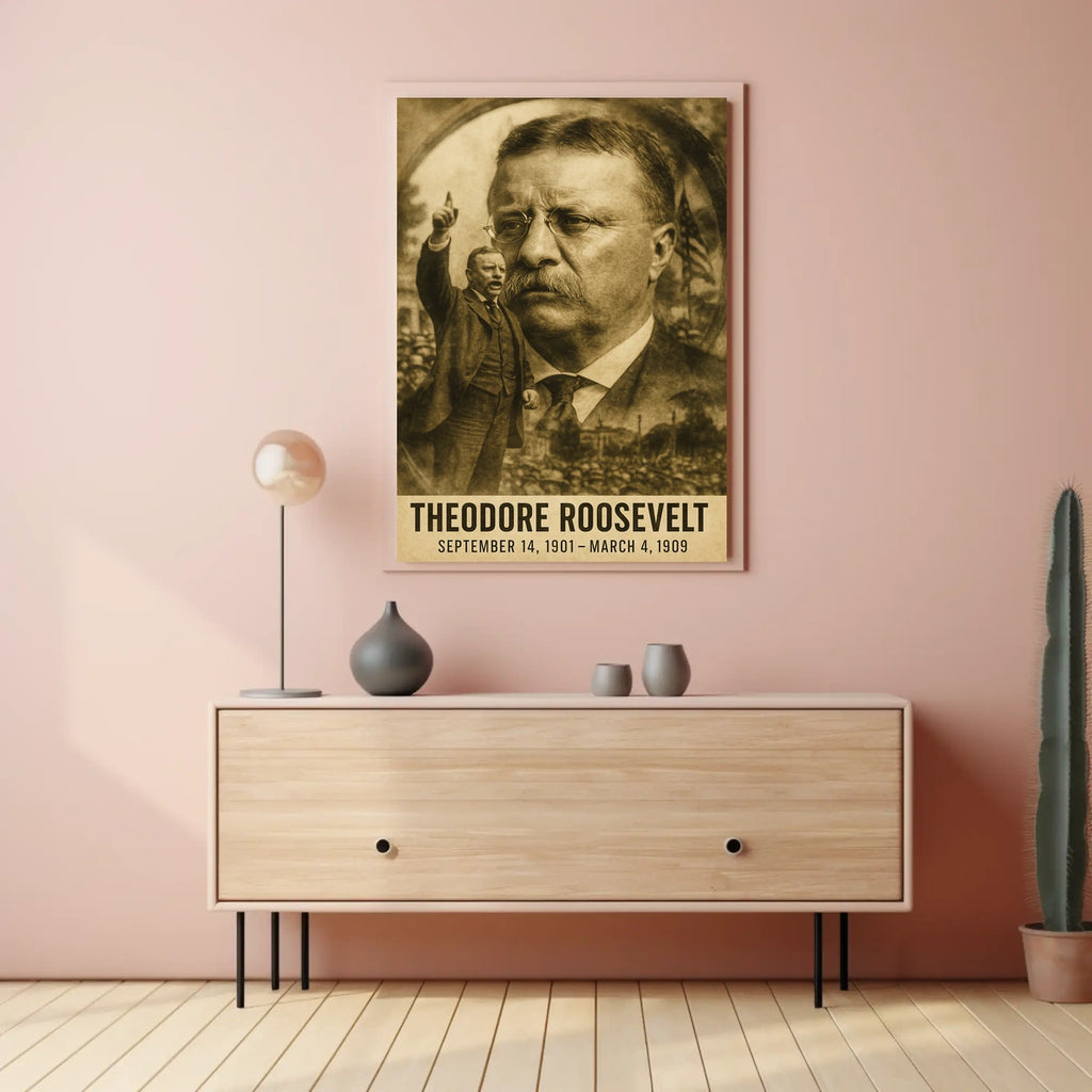 Whether displayed in a living room, study, classroom, or office, this wall art invites conversation about leadership, history, and American heritage. Embrace the enduring legacy of Theodore Roosevelt with a poster that blends classic portraiture and modern interpretation—a standout piece for any wall that celebrates the USA, history, and iconic figures.