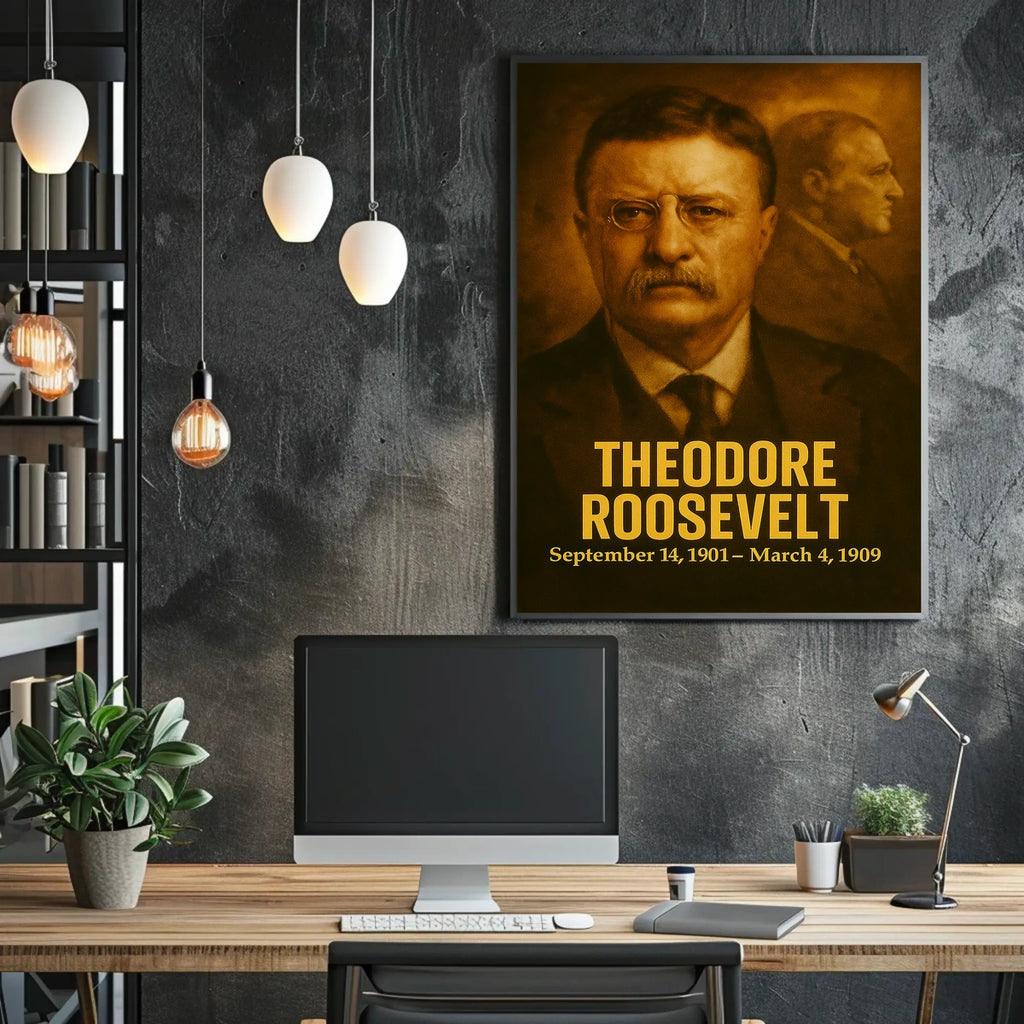 The Theodore Roosevelt Poster Vintage Analog Film Aesthetic Presidential Portrait Wall Art Historical Print celebrates the enduring legacy of one of America’s most dynamic leaders. This timeless wall piece captures Roosevelt’s commanding presence through a vintage analog film aesthetic, making it ideal for collectors, history lovers, or anyone who wants to infuse their space with inspiration and character.