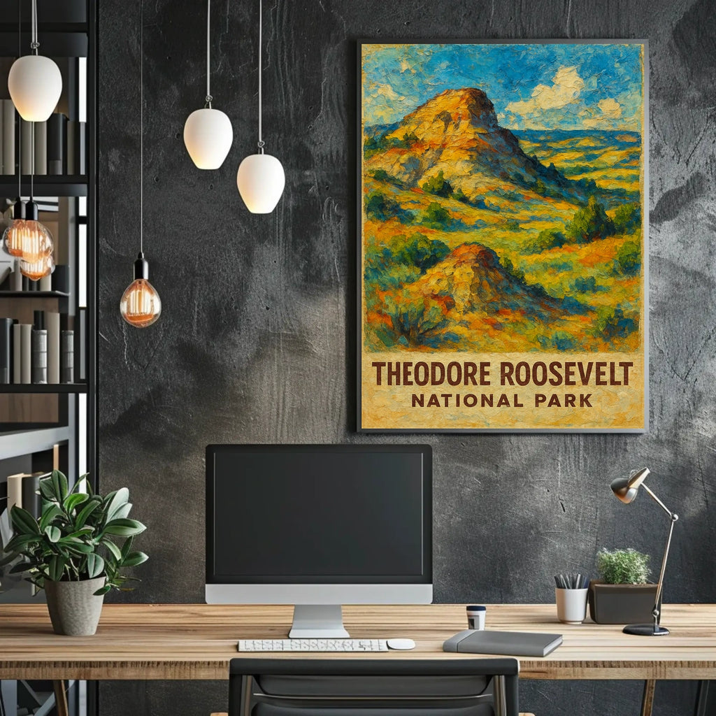 Theodore Roosevelt National Park Poster Celebrate the beauty of this poster with this timeless wall art. Designed to capture its unique appeal, this piece is perfect for collectors, enthusiasts, or anyone who wants to bring meaning and inspiration into their space.