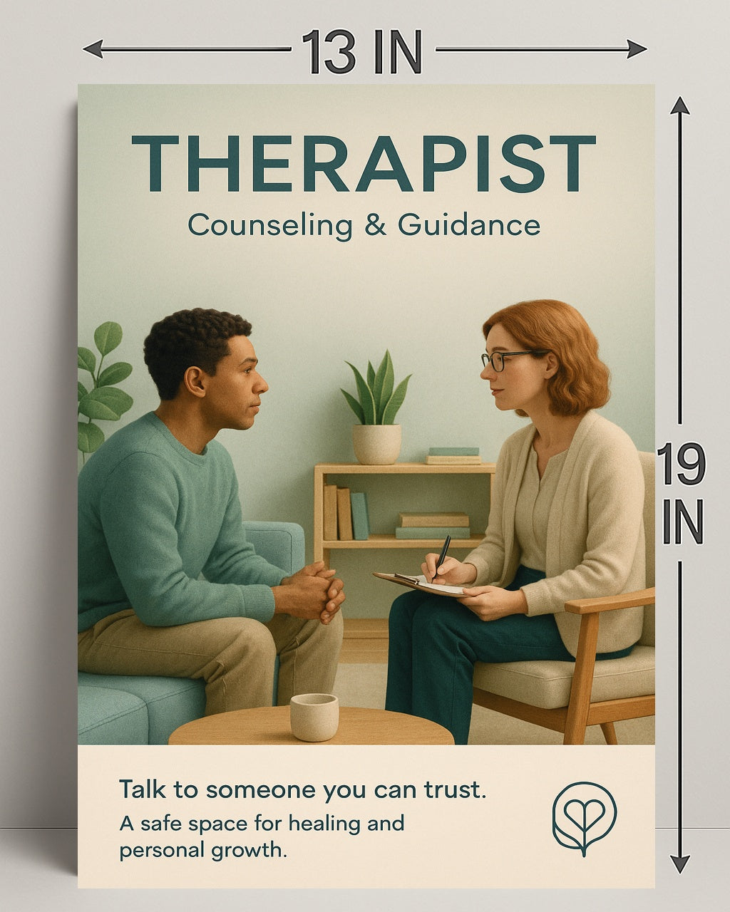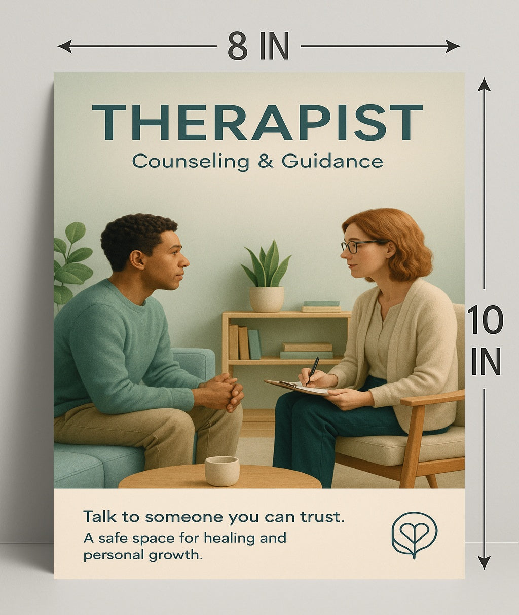 Elevate your environment with the Therapist Counseling Guidance Poster. Its thoughtful design and quality make it not just a piece of art, but a tool for inspiration. Bring home this enchanting decor today and embrace the beauty of guidance and support!
