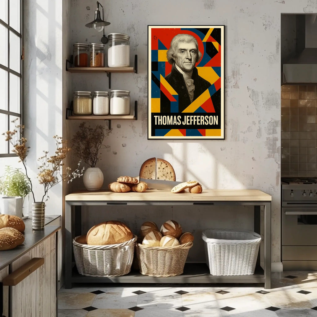 Thomas Jefferson, the 3rd President of the United States, is featured in this abstract pop poster.