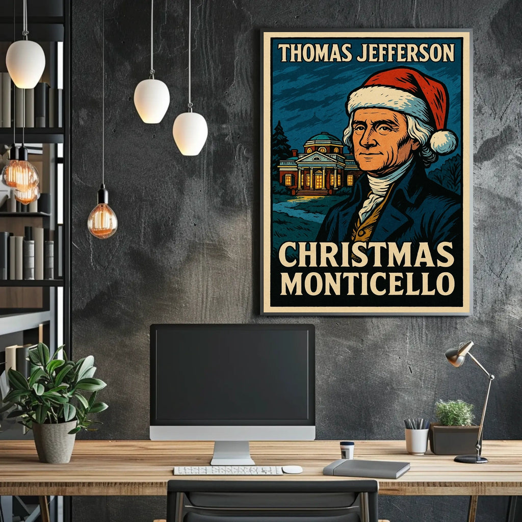 - Printed with precision and made to inspire, this artwork is more than decoration—it’s a conversation piece that connects history, culture, and style. Bring Thomas Jefferson Christmas at Monticello into your home, classroom, or office today and let your walls tell a powerful story.