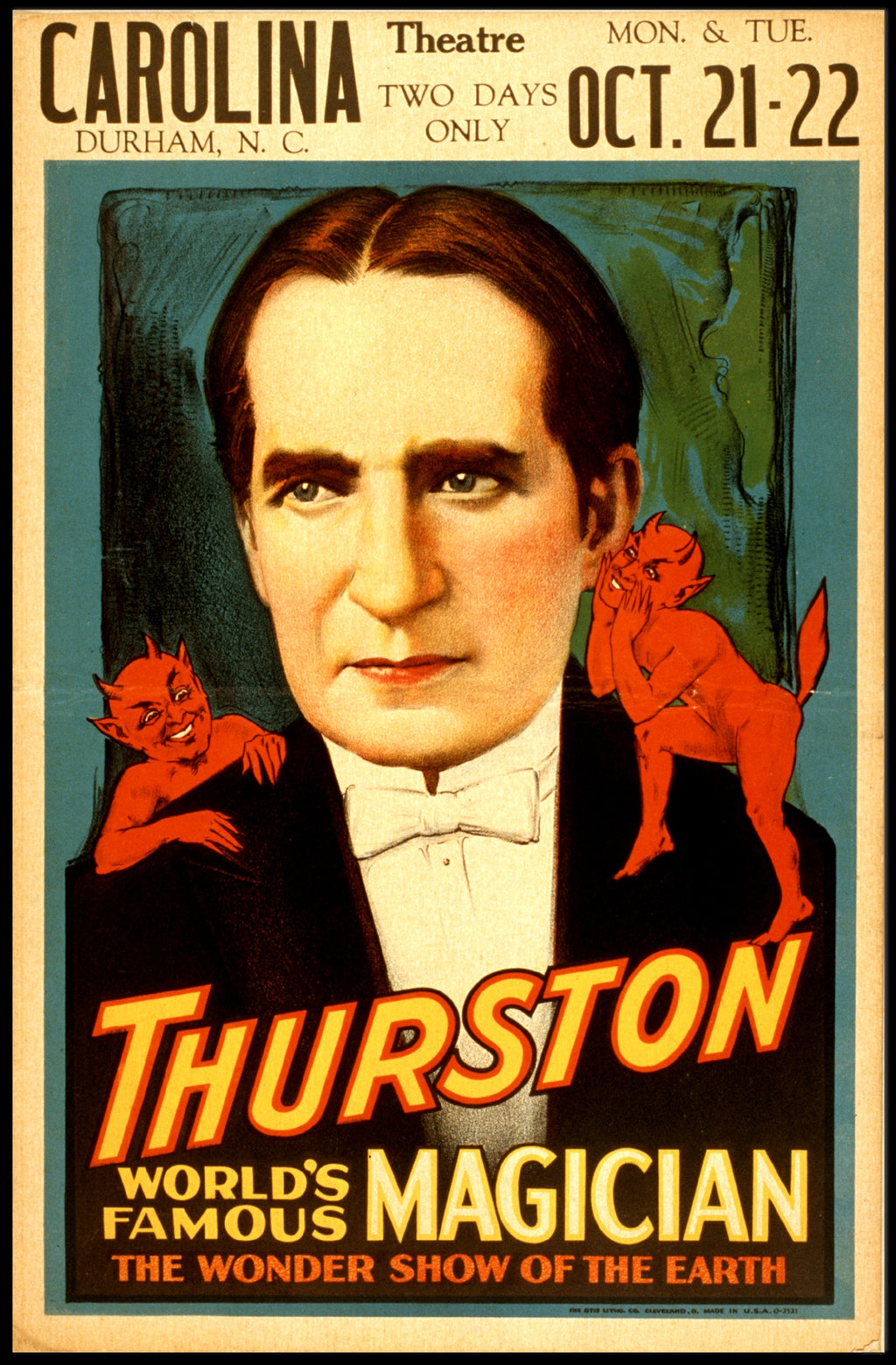- Authentic vintage artistry: Detailed portraiture, bold typography and whimsical red devils flank the magician, recreating the look and feel of period playbills and theatrical artwork.