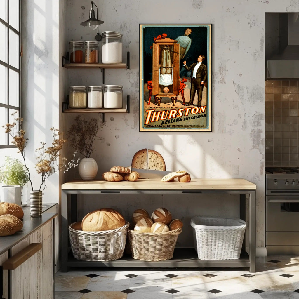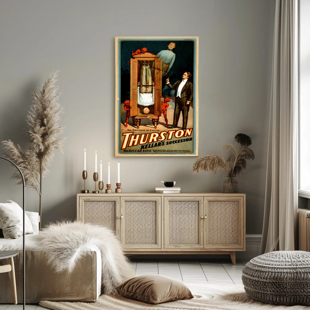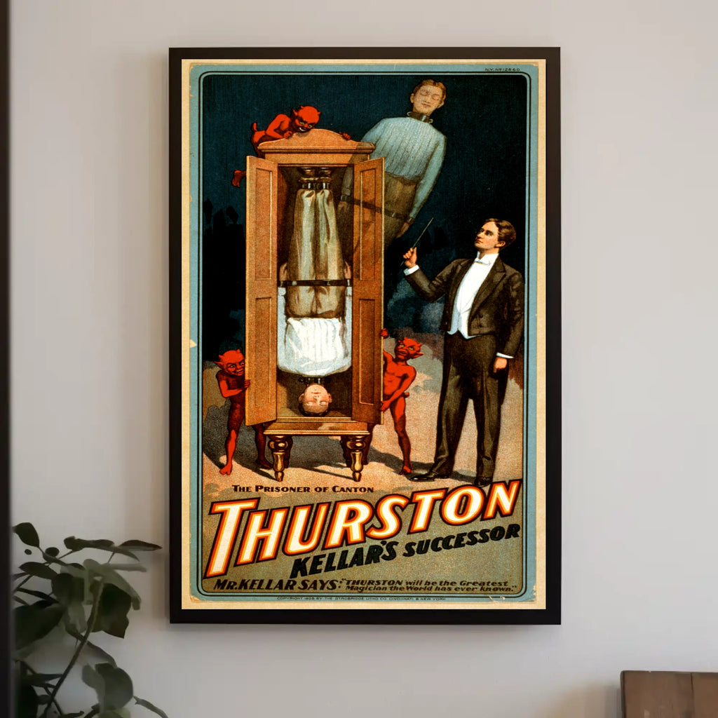 - Authentic vintage appeal: Bold period typography reading “THURSTON” and muted antique tones recreate the nostalgic look of early 1900s advertising posters.