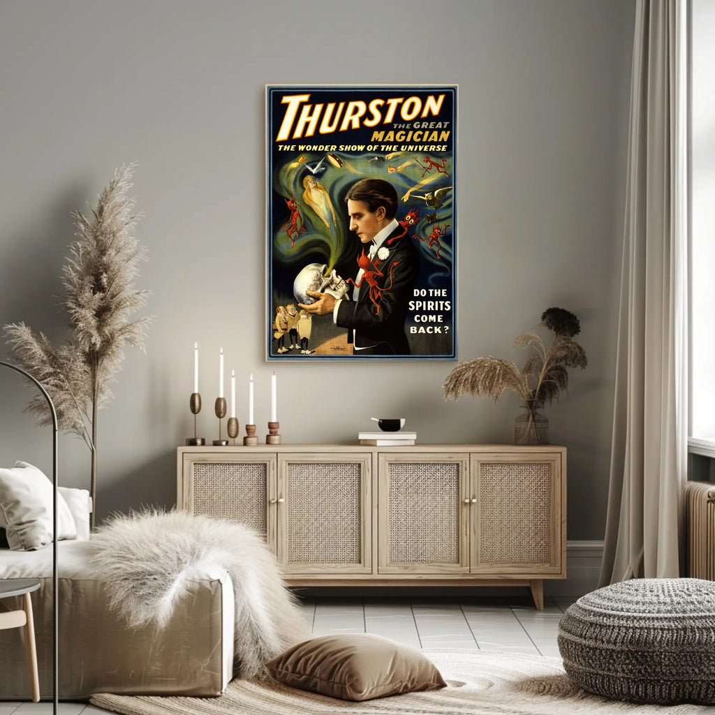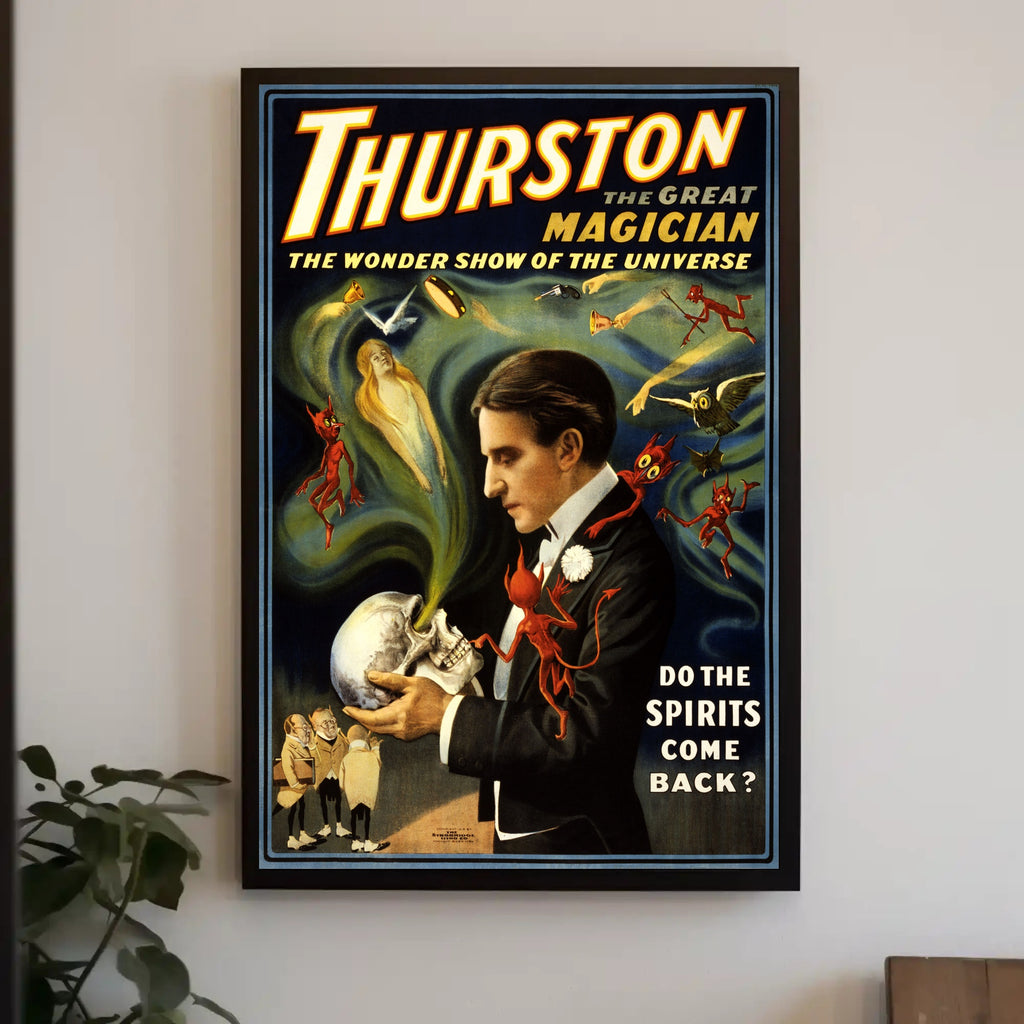 This Thurston poster makes an evocative statement piece for home theaters, galleries, offices, or retail displays—pair it with vintage frames or modern matte mounts to highlight its theatrical colors and dramatic composition. Add a piece of magic history to your collection today with PosterGoat and transform any wall into a conversation-starting display.