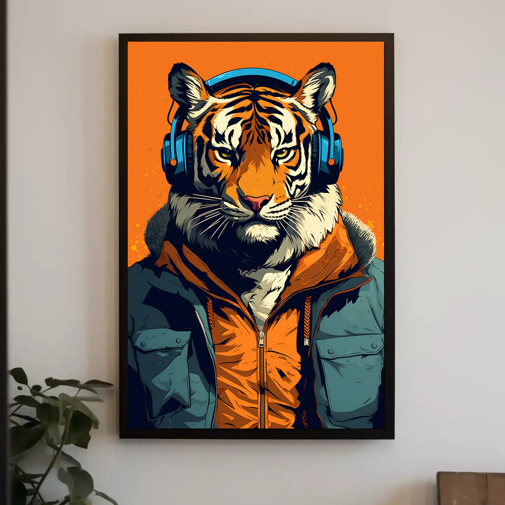 Why you’ll love it: This poster blends individuality with urban attitude — an ideal pick for collectors of pop culture poster art, fans of stylized animal prints, and anyone seeking a bold centerpiece that elevates modern interiors. The confident gaze of the tiger paired with contemporary streetwear motifs makes this piece both stylish and memorable.