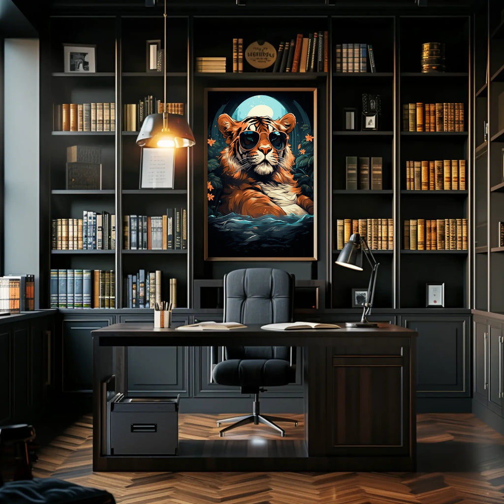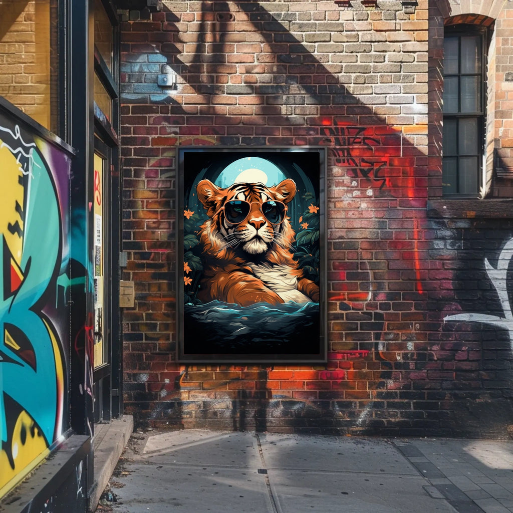 - Printed with precision and made to inspire, this artwork goes beyond decoration—it’s a conversation piece that connects wildlife, culture, and style. Bring the Tiger in Sunglasses Moonlit Jungle into your home, classroom, or office today and let your walls tell a powerful story.
