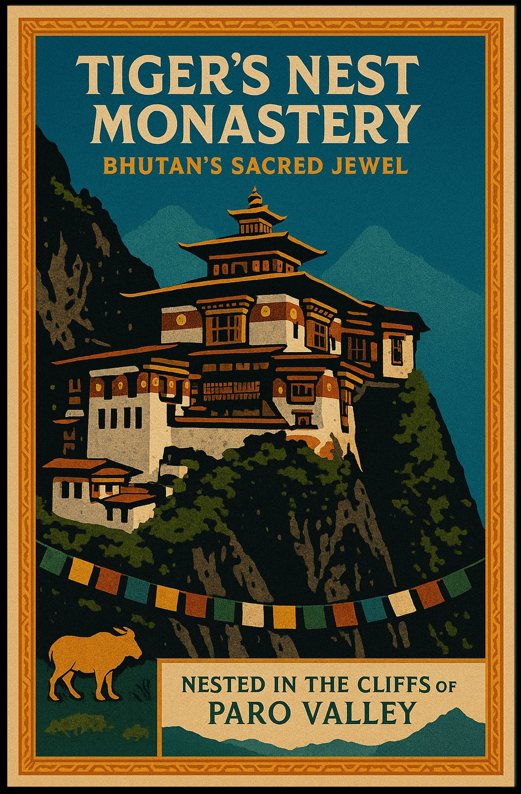 Capture the serene majesty of Tigers Nest Monastery in Bhutan with this Sacred Jewel Poster. Designed for decor lovers and wanderlust spirits, this art print brings spiritual calm, dramatic color, and worldly charm to any room.