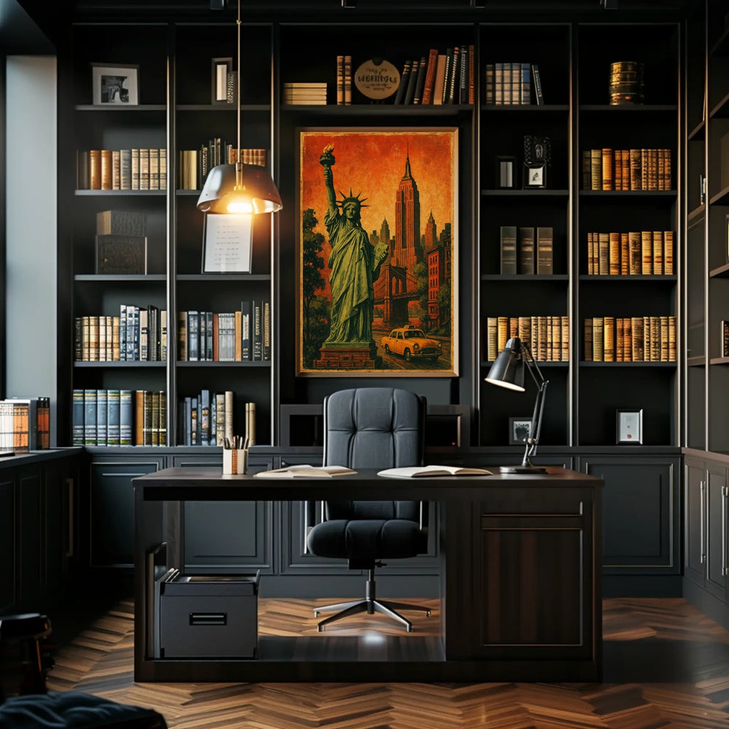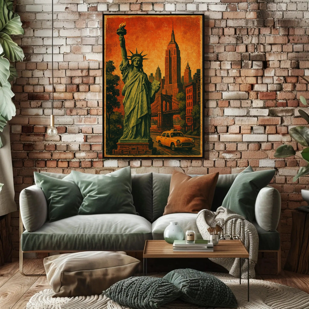 Discover Title Timeless New York, a vintage-style poster that captures NYC’s iconic energy with a striking depiction of the Statue of Liberty, a classic yellow taxi, and the city’s famous skyline. Warm, nostalgic tones evoke history and grandeur, making the Big Apple feel timelessly close and endlessly inspiring in any room.