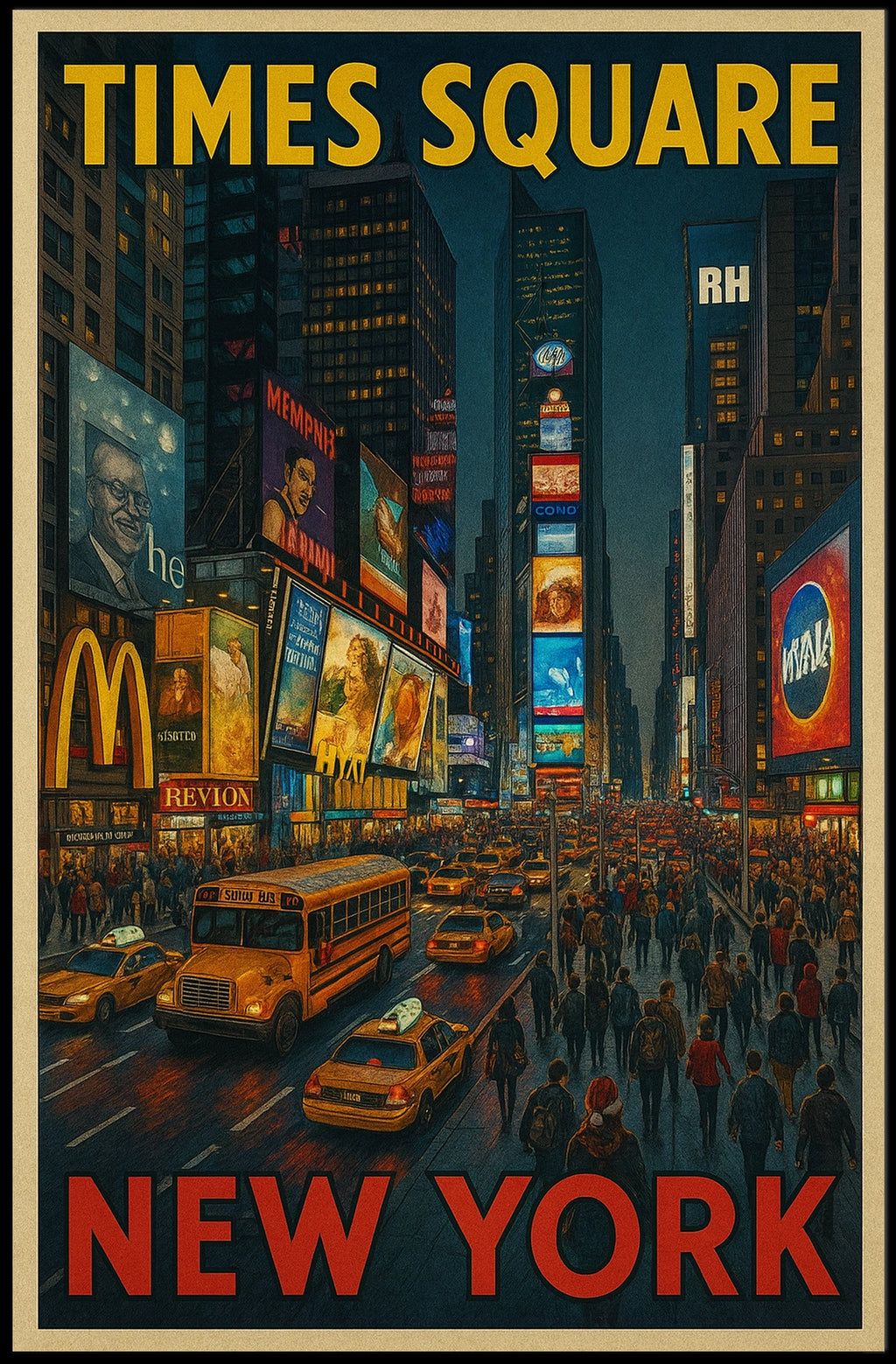 Times Square New York Poster Modern City Lights Wall Art