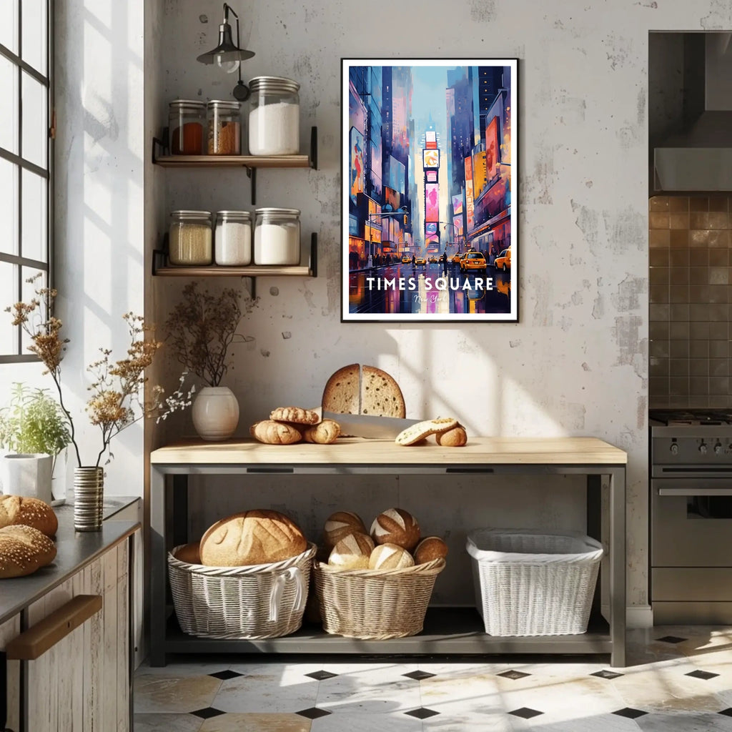 Immerse your space in the pulse of the city with Times Square Nightlife Vivid Urban Cityscape Poster. This contemporary impressionistic print captures the iconic skyline, dazzling billboards, and rainy streets, delivering cosmopolitan appeal to any room.