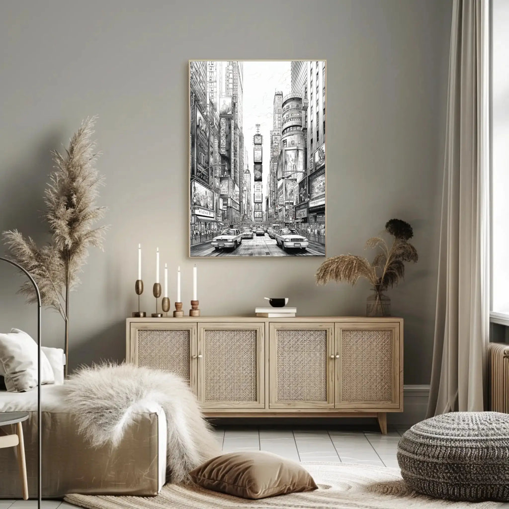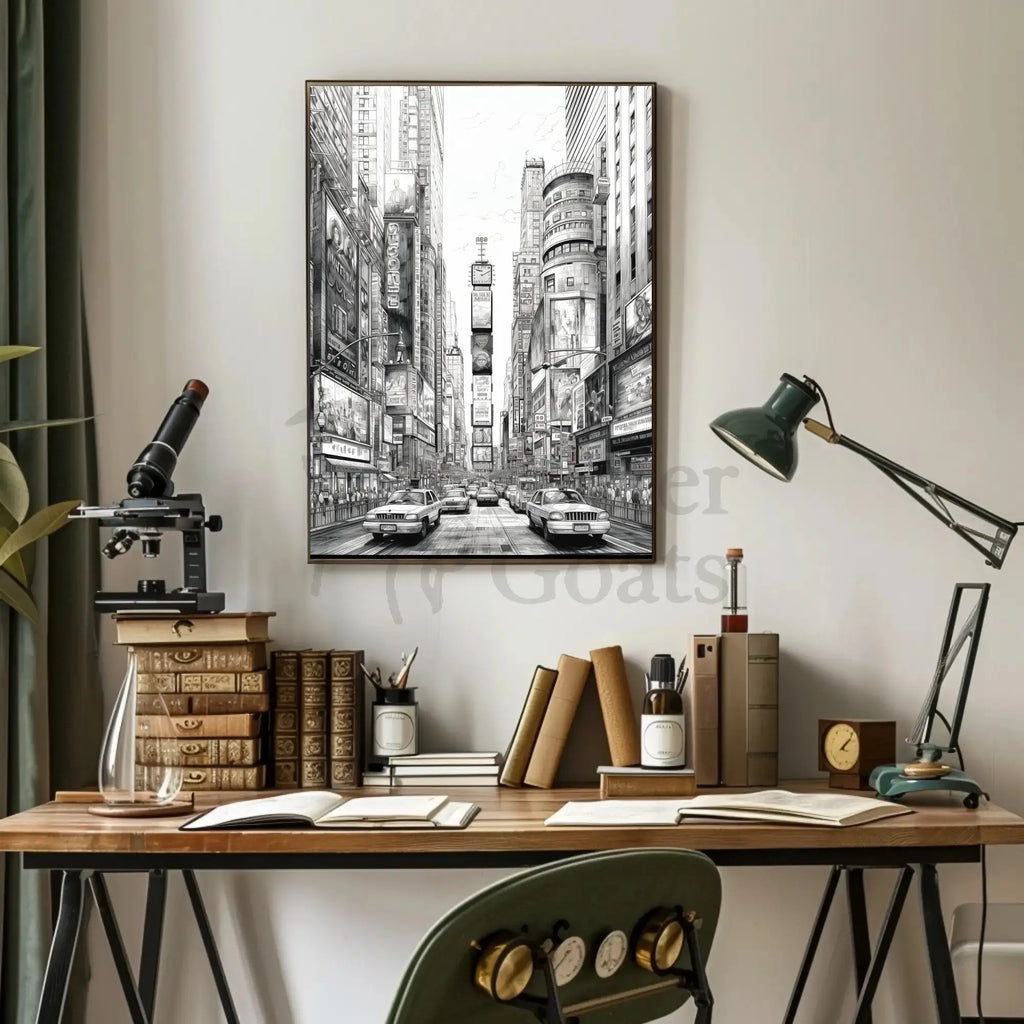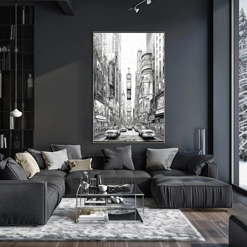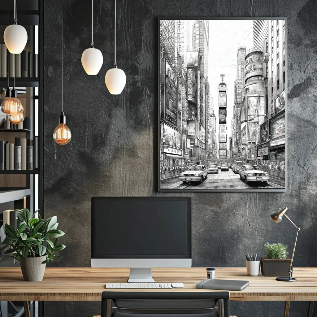 Bring the pulse of the city into your home with the Times Square Urban Vibes Monochrome Artistic Poster from PosterGoat. This striking black-and-white cityscape captures the energy, depth and architectural detail of Times Square in a minimalist, mid-century modern style—perfect for contemporary interiors, office walls, or gallery-style displays.