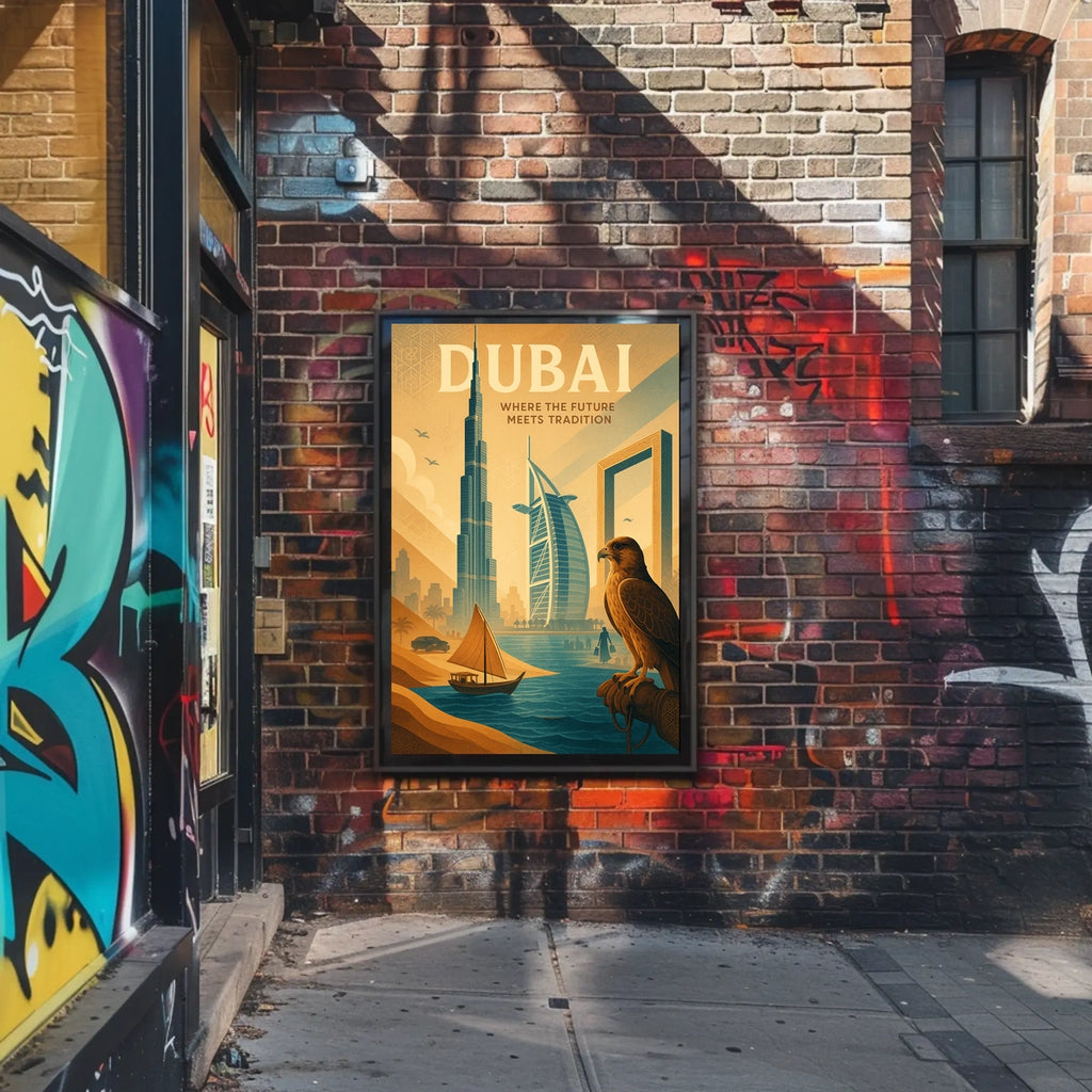 Discover Title Dubai, a visually striking poster that captures the harmonious blend of modern innovation and timeless heritage. This art print elevates any wall, adding cosmopolitan elegance and cultural depth to living rooms, offices, or creative spaces.