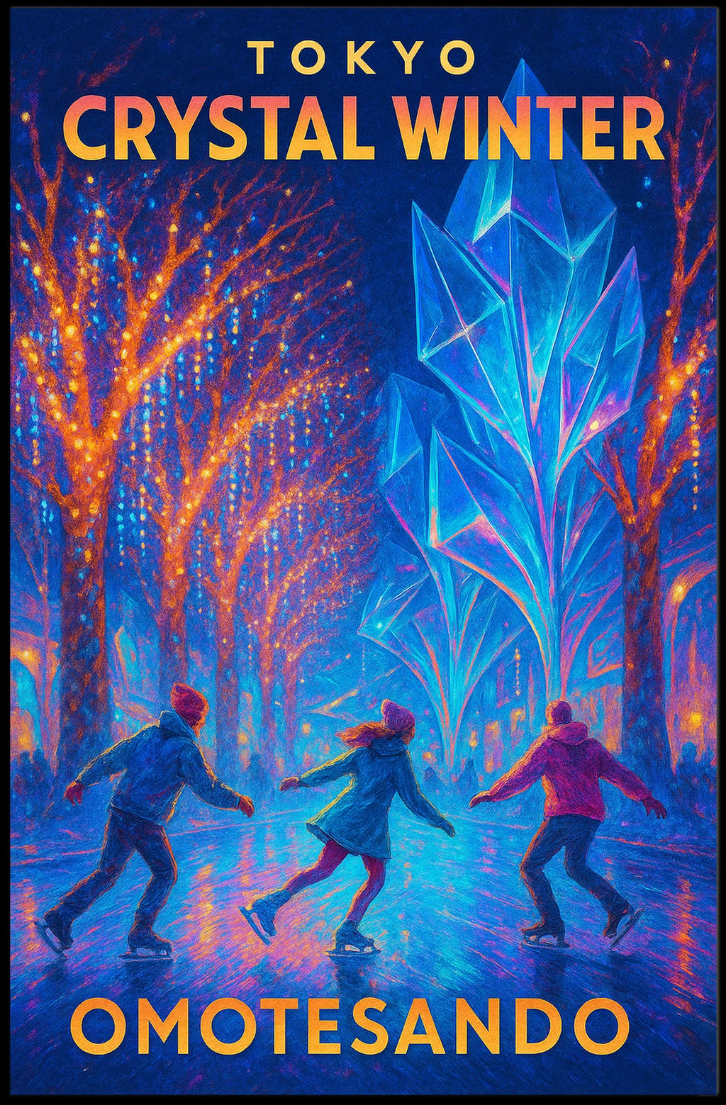 - Detailed design highlighting Tokyo's crystalline winter ambiance and iconic skyline