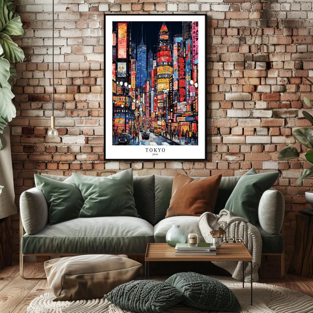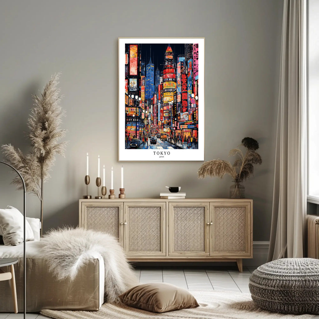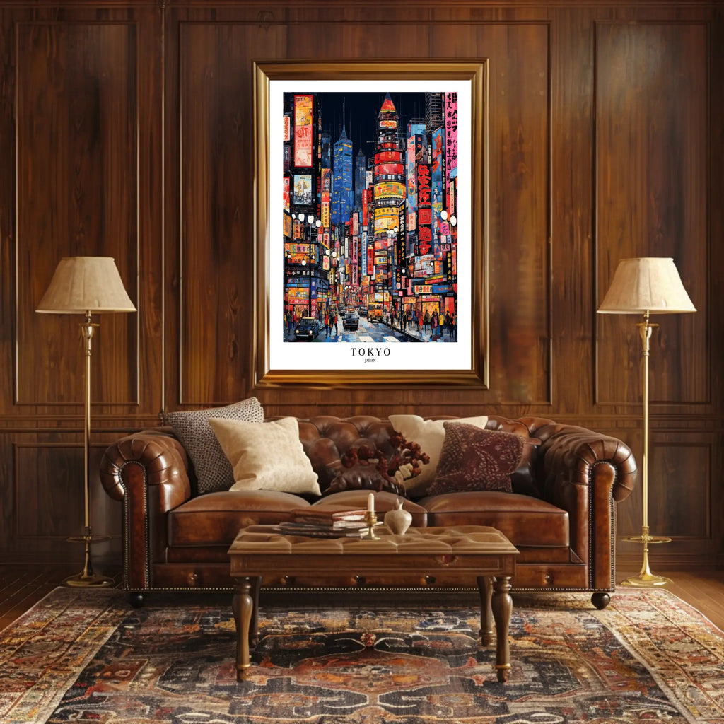 Immerse your space in the electric energy of Tokyo Nights — a vibrant cityscape poster from PosterGoat that turns any wall into a window on late‑night urban life. This art print captures the neon-lit avenues, layered signage, and bustling streets of Tokyo with bold color, crisp detail, and a minimalist white border that frames the scene for a modern, gallery-ready look.