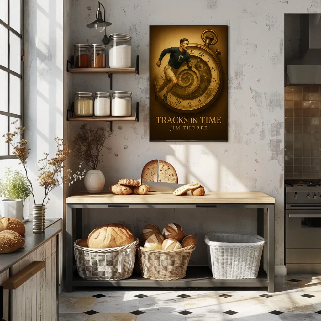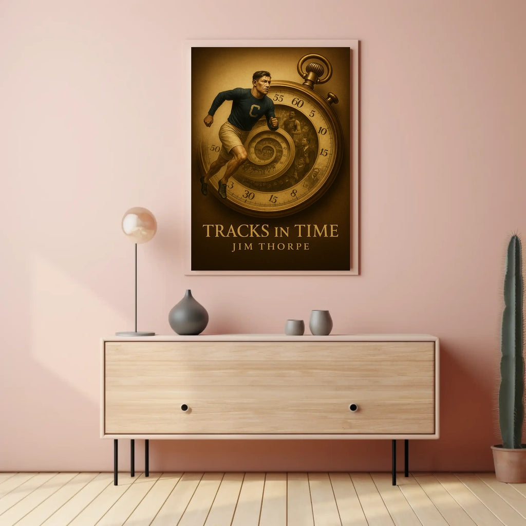 Intro: Immerse yourself in the rich legacy of athletics with Tracks in Time, a striking poster that features a runner bursting from a vintage stopwatch. The swirling clock face symbolizes timeless achievements and the enduring spirit of legendary athletes, making it a bold centerpiece for any sports-minded space.