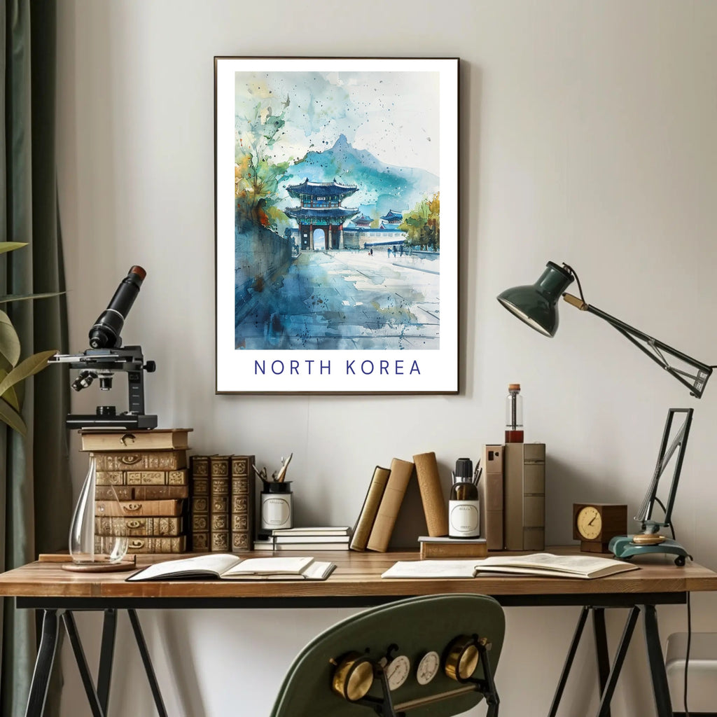 Bring a piece of Korean cultural heritage into your home with this striking Traditional Korean Gate Scenic Art poster from PosterGoat. Rendered in a dreamy, impressionistic watercolor style, the print features a multi‑tiered pagoda-style gate framed by misty mountain peaks and historic buildings — a peaceful, nostalgic scene that evokes both travel and tradition.