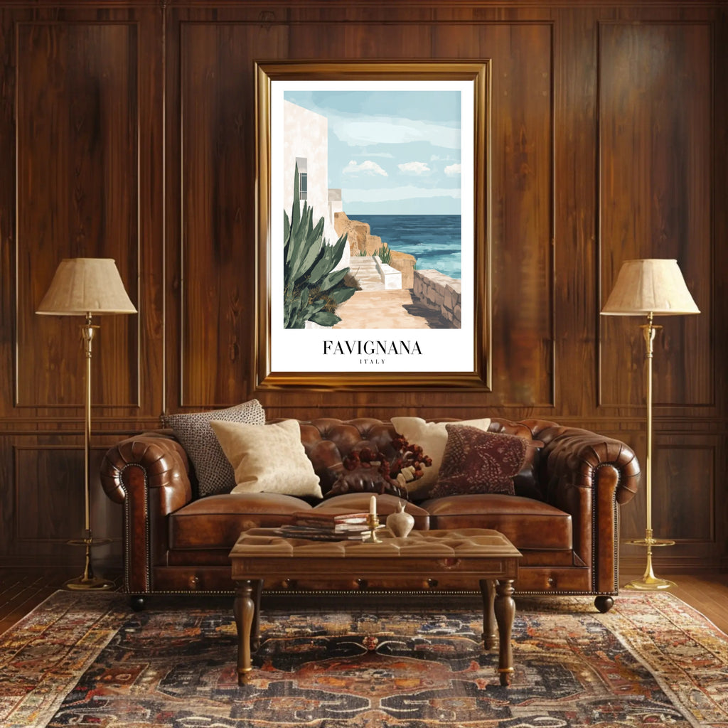 From PosterGoat — crafted with attention to composition and color, this Favignana poster is designed to elevate serene decor schemes and inspire travel dreams.