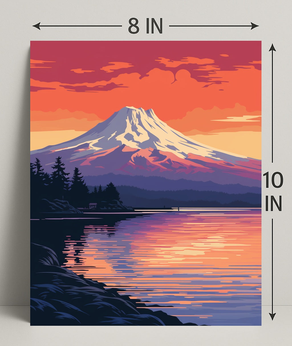 Bring the calm of high peaks and the glow of dusk into your home with the Tranquil Mountain Sunset Poster from PosterGoat. This scenic poster captures a stylized mountain silhouette above a glass-like lake, with warm sunset hues reflected in rippling water—an ideal piece for decor lovers seeking a minimalist yet captivating focal point.