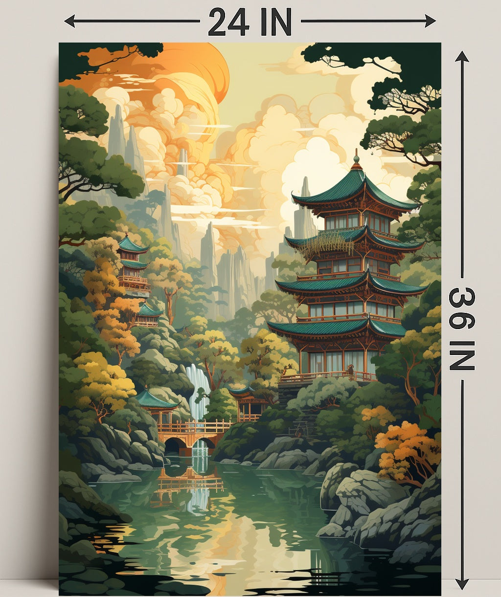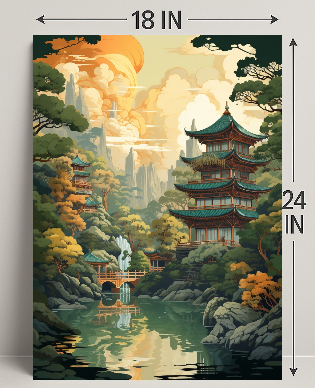 Ready to transform your wall? Bring the Tranquil Pagoda Landscape Poster home today from PosterGoat and enjoy a daily escape into scenic tranquility.