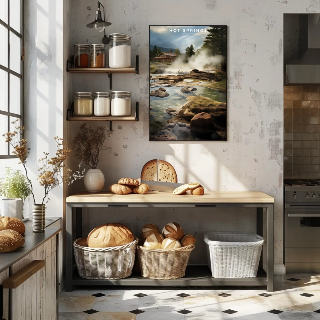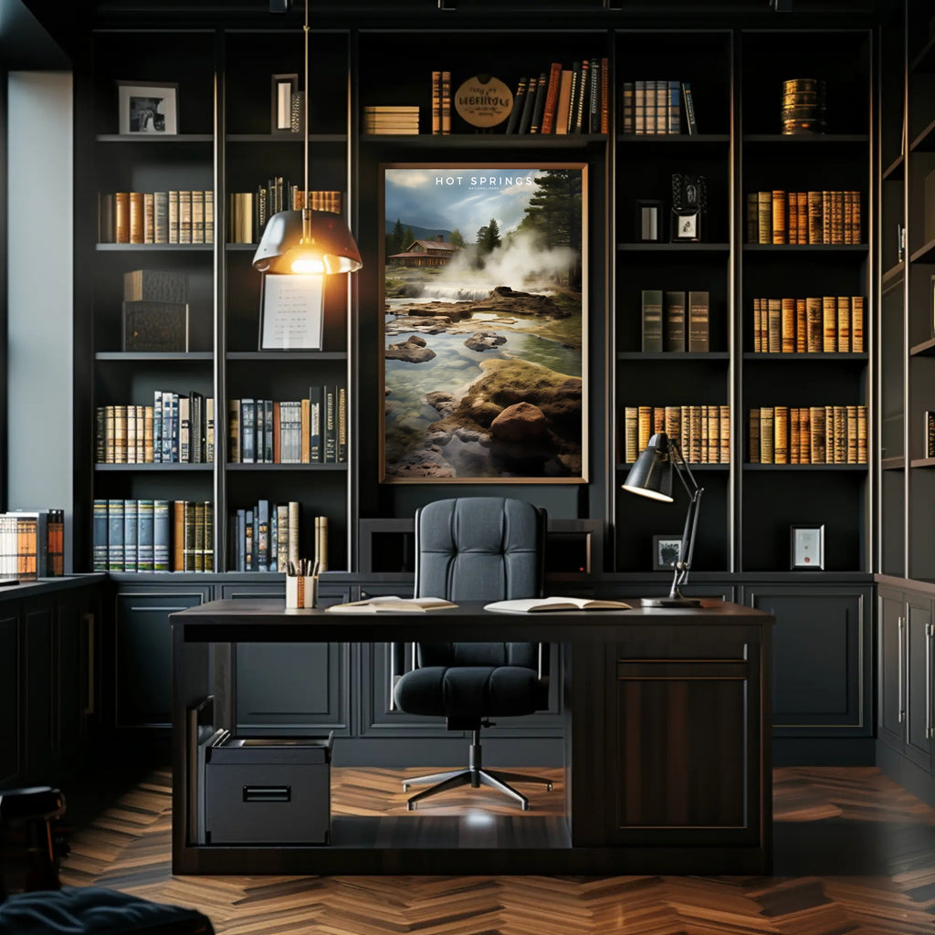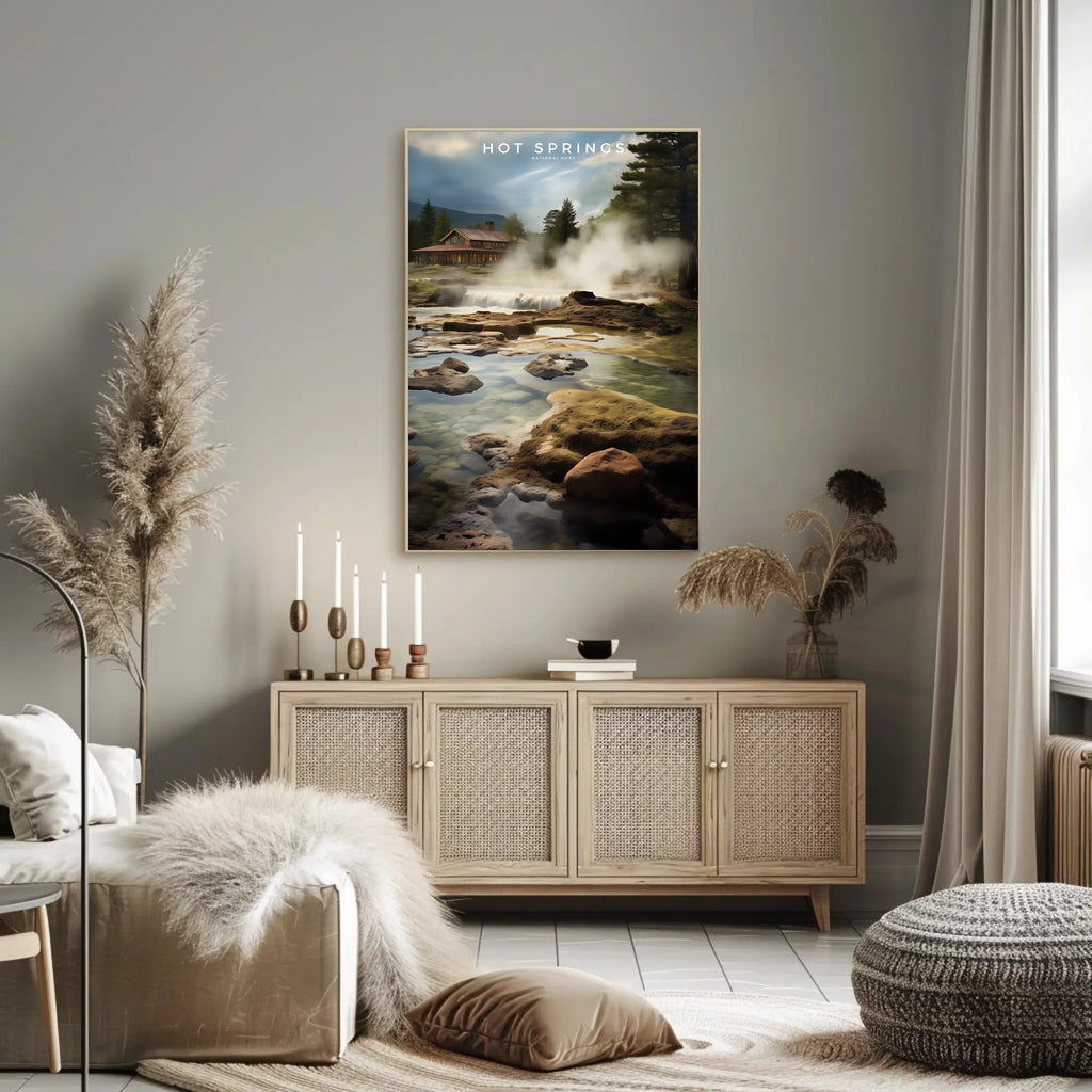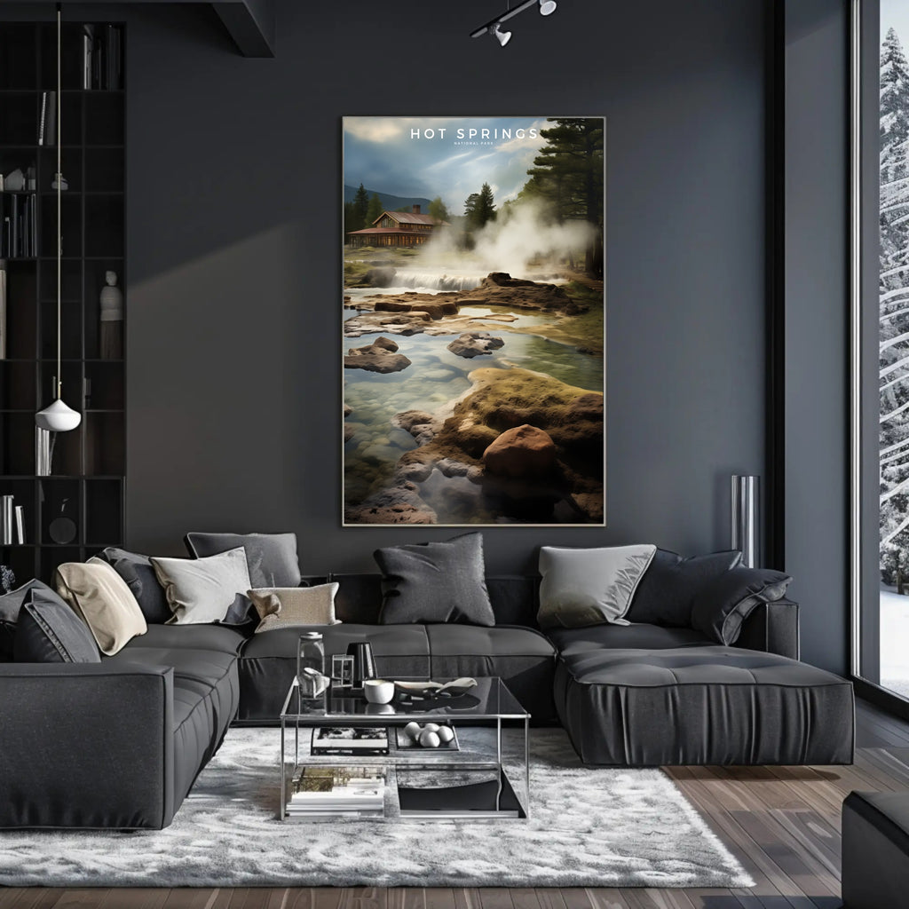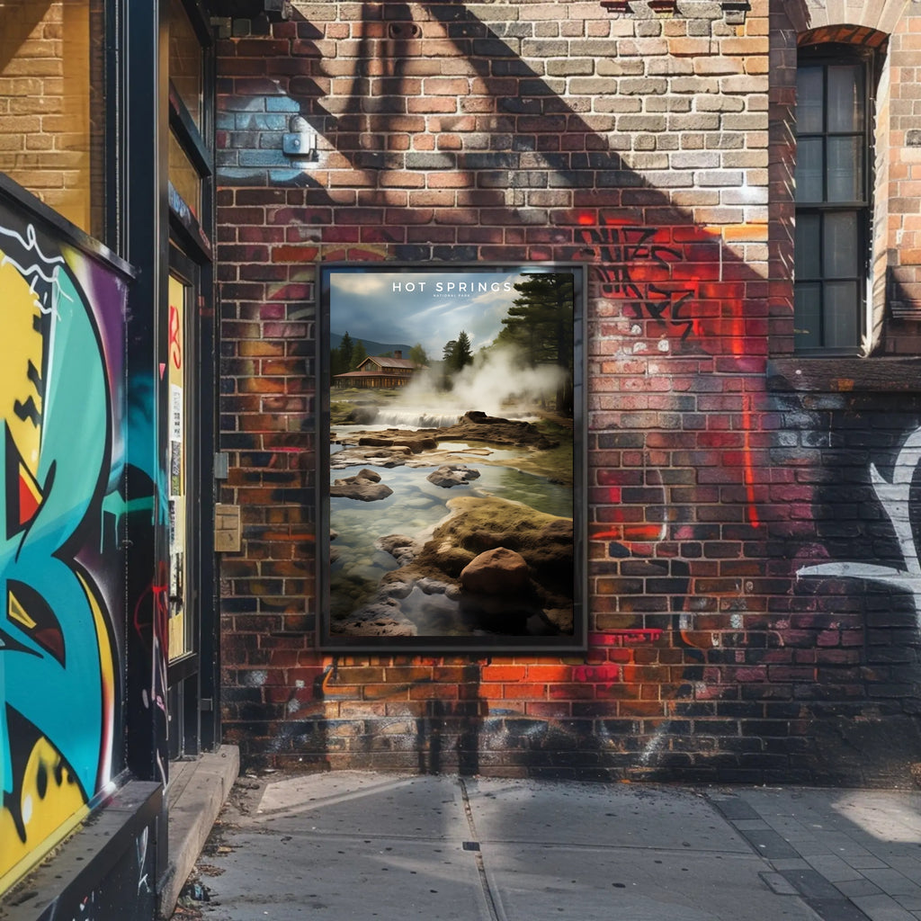 - Classic travel poster composition: Clean typography reading “HOT SPRINGS” and a cinematic layout deliver a timeless, collectible look rooted in Travel & Places themes.