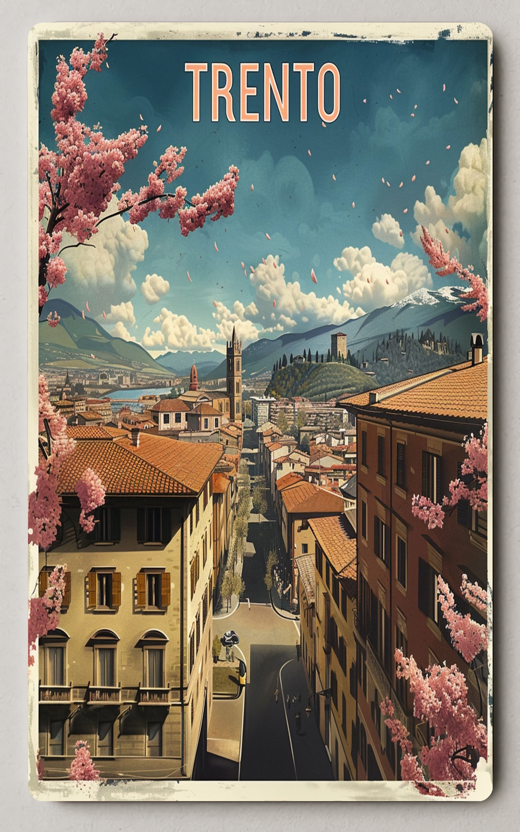 Elevate your collection with this timeless depiction of Trento—add the Tranquil Trento Trading Card to your cart today and enjoy a piece of Italy from PosterGoat.