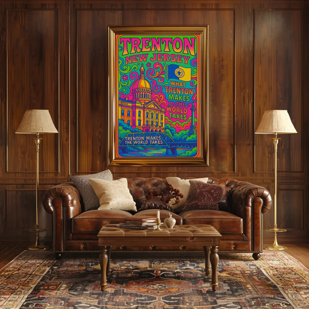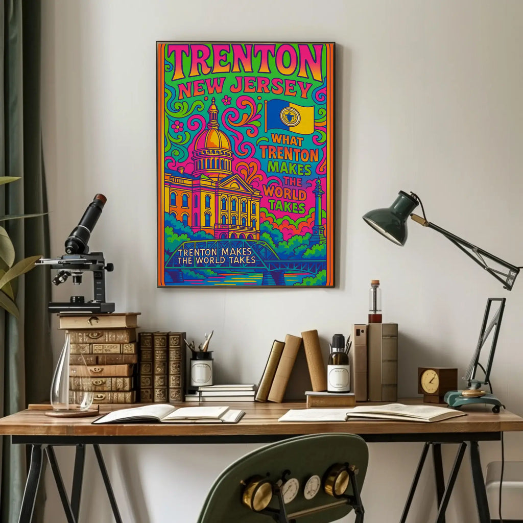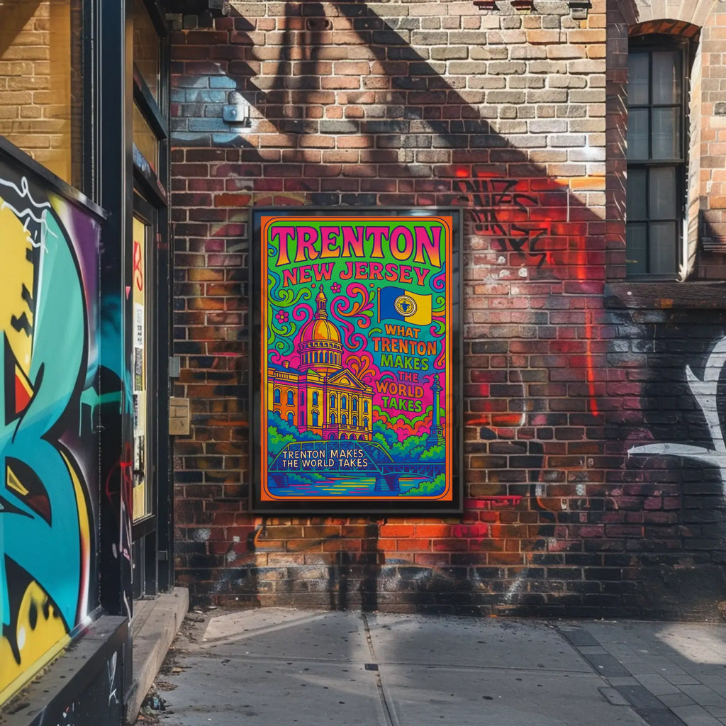 Add a burst of color and hometown pride to your walls — order your Trenton New Jersey Vibrant Heritage Artistic Poster from PosterGoat today.